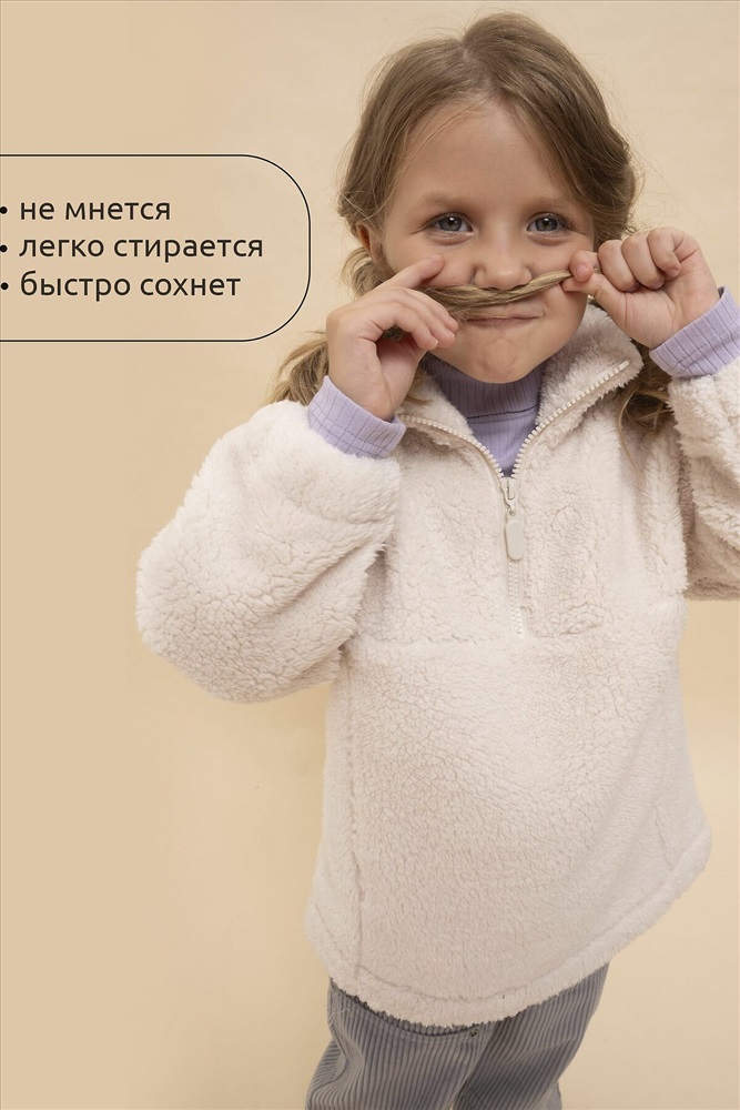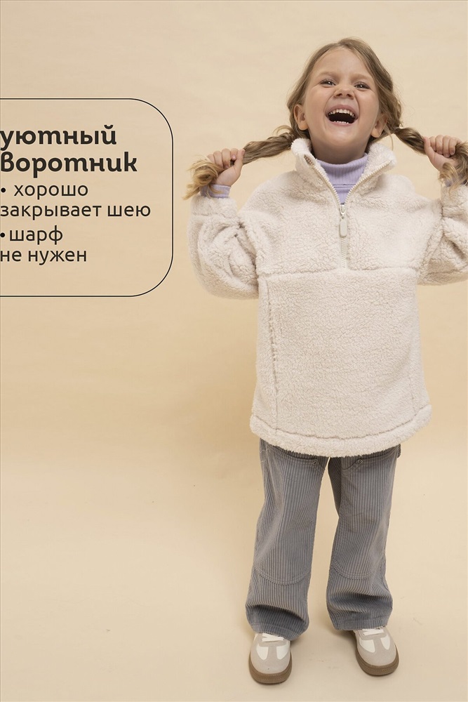 детская для девочки. Трендовая трикотажная куртка увеличенного объёма из мягкого двустороннего материала берберфлис с фактурой "барашек" заменит ветровку в прохладную погоду и поможет создать модный суперкомфортный расслабленный образ. Толстовка флисовая застёгивается на короткую молнию — актуальный тренд. Модель выполнена из 100% полиэстера — она лёгкая, мягкая, износостойкая, просто стирается и быстро сохнет. Высокий объёмный воротник-стойка с защитным ограничителем и широкие манжеты защитят от холода и ветра. По низу куртка детская дополнена эластичным шнуром со стоперами для регулировки ширины. Толстовка для девочки на молнии дополнена большим и удобным карманом-кенгуру. Модель выполнена в универсальных оттенках, которые хорошо сочетаются с одеждой любых цветов. Толстовка легко комбинируется с различными брюками, джинсами. Уютная и стильная куртка для девочки неприхотлива в уходе. Помните о правильном уходе за изделием: рекомендуется стирать при температуре не выше 30 °C, без предварительного замачивания, с изнанки. Это поможет сохранить качество и цвет куртки на длительное время. Не забывайте о выборе правильного размера. Используйте таблицу размеров на фотографии, чтобы выбрать подходящий вариант для вашей девочки. Обратите внимание, что цвет товара на экране вашего устройства может отличаться от реального.