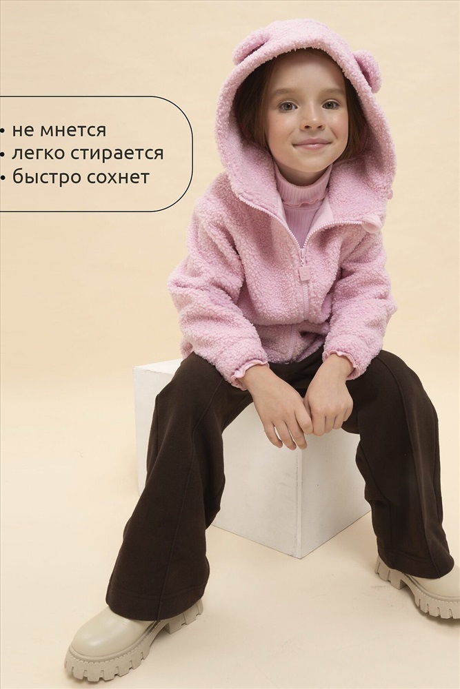 ID товара: 1063837 Состав: 100% Полиэстер Сезон: Демисезон Длина: Средняя Фасон: Свободный Рукав: длинные Вид застежки: Молния Вырез горловины: Капюшон Тип карманов: Накладные Основная ткань: Полиэстер Стиль: повседневный Страна бренда: Россия Страна производства: Китай Трикотажная куртка для девочки. Супертренд сезона — милые ушки на одежде. Толстовка из мягкого, тактильно приятного берберфлиса (фактура «барашка») поможет создать «няшный», «кавайный» образ. Куртка умеренного оверсайз-силуэта подойдёт девочкам с любой фигурой. Капюшон двухшовный — это обеспечивает анатомически правильную форму и комфортную посадку по голове. На капюшоне трендовый декор — ушки медвежонка, а также удобные утяжки — можно регулировать объём. Толстовка флисовая застёгивается на удобную центральную молнию. По низу изделия также есть утяжка. Модель выполнена из 100% полиэстера — она лёгкая, мягкая, износостойкая, просто стирается и быстро сохнет. По переду куртка детская дополнена карманами, их округлые контуры обработаны декоративной строчкой — актуальный модный приём. Толстовка с ушками выполнена в универсальных оттенках, которые легко сочетаются с одеждой разных цветов. Уютная и стильная куртка для девочки неприхотлива в уходе. Помните о правильном уходе за изделием: рекомендуется стирать при температуре не выше 30 °C, без предварительного замачивания, с изнанки. Это поможет сохранить качество и цвет куртки на длительное время. Не забывайте о выборе правильного размера. Используйте таблицу размеров на фотографии, чтобы выбрать подходящий вариант для вашей девочки. Обратите внимание, что цвет товара на экране вашего устройства может отличаться от реального. Комментарии к товару