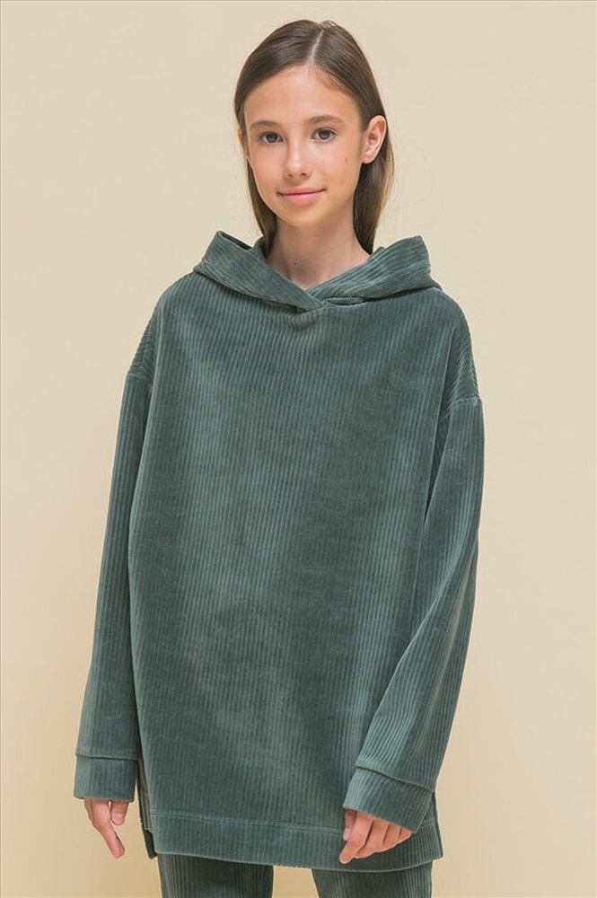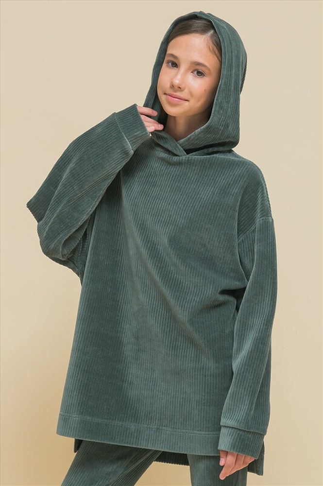 ID товара: 917498 Состав: 67% Хлопок, 29% Полиэстер, 4% Эластан Сезон: Демисезон Длина: Средняя Фасон: Свободный крой Рукав: длинные Вырез горловины: Капюшон Основная ткань: Хлопок Стиль: Повседневный Страна бренда: Россия Страна производства: Россия Толстовка с капюшоном для девочки. Велюровый джемпер в рубчик трендового оверсайз-силуэта со спущенным плечом подарит ребёнку комфорт и не будет стеснять его движений. Худи с капюшоном с двумя швами, что обеспечивает анатомически правильную форму и комфортную посадку по голове. Спинка немного длиннее переда, по бокам разрезы — актуальные, стильные детали. Широкие рукава на манжете из основной ткани. Худи однотонное, без принта. За толстовкой легко ухаживать. В составе ткани (трикотажный велюр) преобладает высококачественный хлопок — худи мягкое и отлично пропускает воздух, позволяя коже ребёнка дышать. Благодаря эластану изделие сохраняет великолепную форму в течение долгого времени. Джемпер выполнен в двух актуальных цветах: красном и зелёном (оттенок хаки). Его легко сочетать с любыми брюками, легинсами, джинсами. В линейке представлены следующие размеры: 1 (86): 2 (92): 3 (98): 4 (104): 5 (110): 6 (116): 7 (122): 8 (128): 9 (134): 10 (140): 11 (146). Худи детское подходит девочкам дошкольного возраста, младшим школьницам и девочкам-подросткам. Модель идеальна для детского сада, прогулок, отдыха, её можно носить дома. Толстовка оверсайз с капюшоном подходит для круглогодичного применения: летом, осенью, зимой, весной и демисезон. Это замечательный подарок дочери, внучке или сестре на День рождения и любой другой праздник. Комментарии к товару