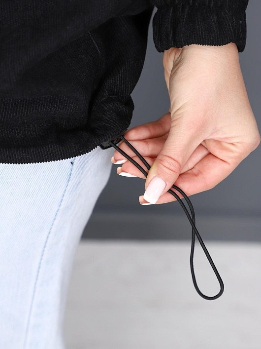 Толстовка женская из вельвета, со спущеным плечом. Воротник - стойка на молнии. Низ рукава на резинке. По низу изделия - регулировка с фиксаторами.