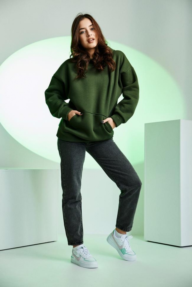 Уютное худи свободного кроя с объемным капюшоном, спущенным плечом и удобным карманом кенгуру. Оверсайз крой не сковывает движений, изделие хорошо держит форму. Толстовка из трикотажного футера с мягким начесом очень теплая и приятная к телу. Худи одинаково стильно будет смотреться на разных типах фигуры. Красивые насыщенные цвета и минималистичный дизайн сделают эту базовую вещь самой любимой в вашем гардеробе.Худи эффектно смотрится с любыми джинсами: укороченными и широкими, клеш и бойфредами.