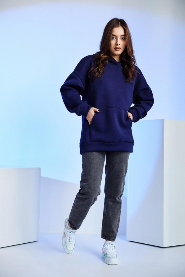 Уютное худи свободного кроя с объемным капюшоном, спущенным плечом и удобным карманом кенгуру. Оверсайз крой не сковывает движений, изделие хорошо держит форму. Толстовка из трикотажного футера с мягким начесом очень теплая и приятная к телу. Худи одинаково стильно будет смотреться на разных типах фигуры. Красивые насыщенные цвета и минималистичный дизайн сделают эту базовую вещь самой любимой в вашем гардеробе.Худи эффектно смотрится с любыми джинсами: укороченными и широкими, клеш и бойфредами.