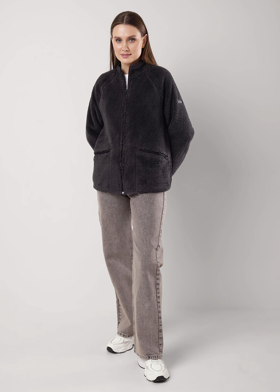Куртка спортивная из трикотажного полотна велсофт, на молнии. По горловине стойка с окантовкой. Спереди горизонтальные резы с карманами в шве на молнии. Длинный рукав реглан, нашивка. По низу изделия окантовка. Сзади вышивка.