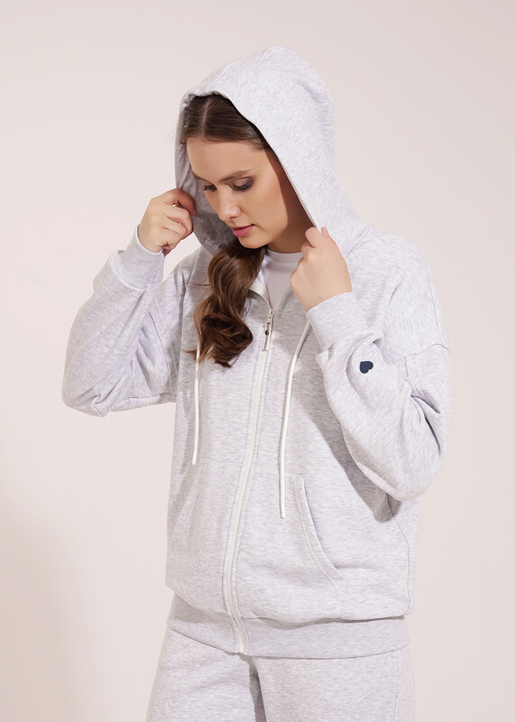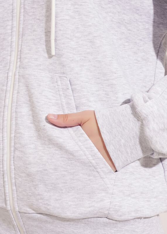 Куртка спортивная из трикотажного полотна футер,на молнии. По горловине капюшон на подкладе со шнуром. Длинный рукав со спущенной линией плеча, нашивка.По низу рукава и изделия манжеты. Спереди карман кенгуру, принт.По пройме и шву рукава открытый срез.