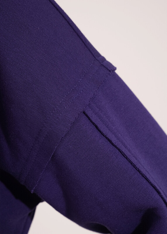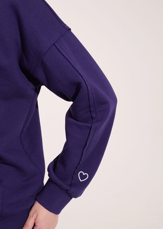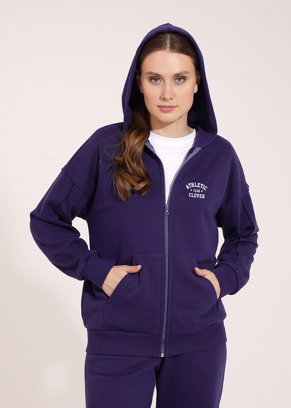 Куртка спортивная из трикотажного полотна футер,на молнии. По горловине капюшон на подкладе со шнуром. Длинный рукав со спущенной линией плеча, нашивка.По низу рукава и изделия манжеты. Спереди карман кенгуру, принт.По пройме и шву рукава открытый срез.