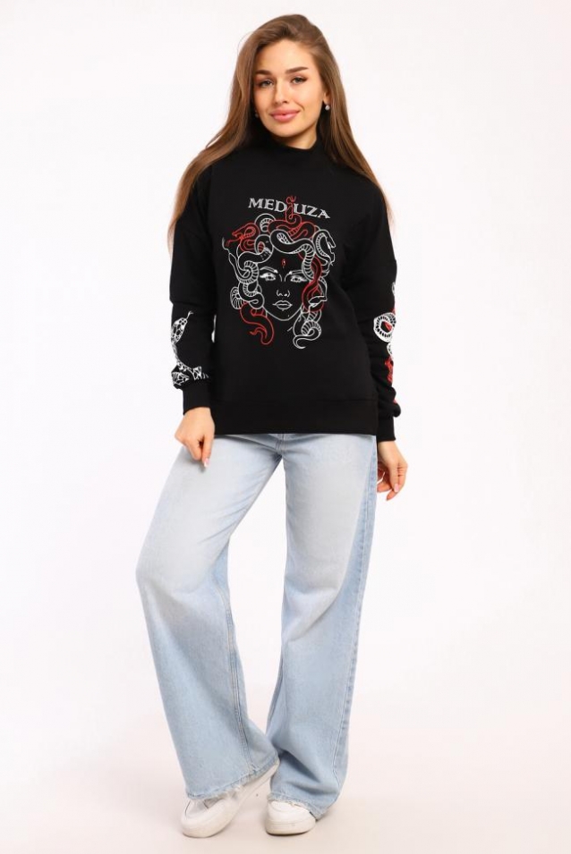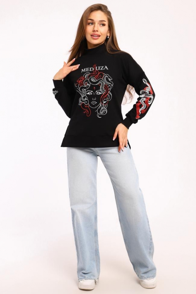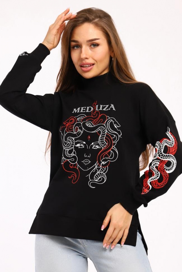 Толстовка с принтом KEM это стильное и комфортное решение для повседневного образа. Модель выполнена из мягкой и приятной к телу ткани, состоящей из 71% хлопка, 24% полиэстера и 5% лайкры, что обеспечивает свободу движений и удобство в носке. Оригинальный принт медуза на толстовке добавляет индивидуальности и яркости вашему стилю. Благодаря разрезам по бокам толстовка прекрасно садится на фигуру, подчеркивая ее достоинства. Модель без капюшона и застежки, что делает ее еще более удобной для носки.