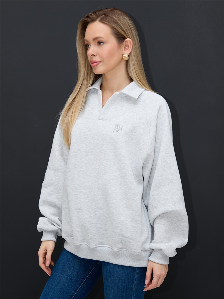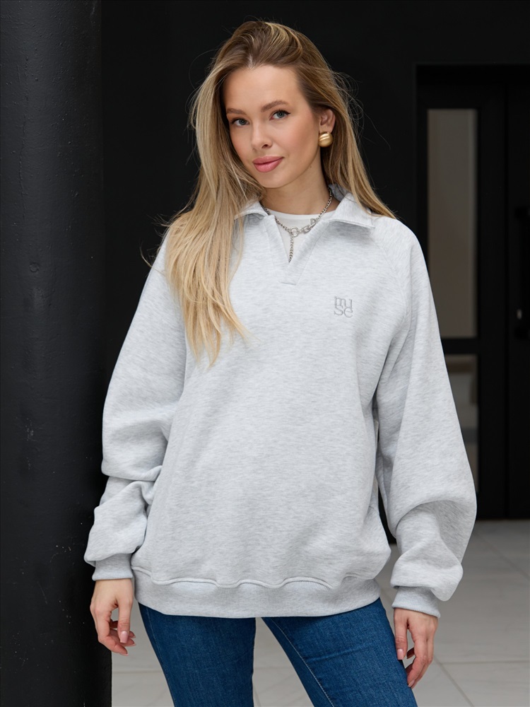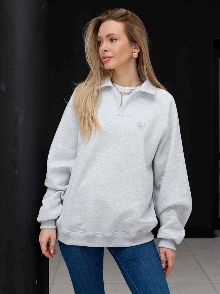 Состав: 70% хлопок, 30% ПЭ Ткань: Футер 3-х нитка с начесом Толстовка женская из трикотажного полотна "кармеланж" с отделкой из полотна "кашкорсе", оверсайз, с рукавами покроя "реглан", стояче-отложным воротником и V-образным вырезом горловины, обработаннм втачными планками и вышивкой на детали переда. Притачной пояс по низу изделия и манжеты рукавов выполнены из полотна "кашкорсе" в цвет основого материала. По воротнику, швам реглана и шву притачивания пояса настрочены отделочные строчки.