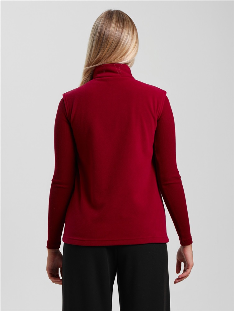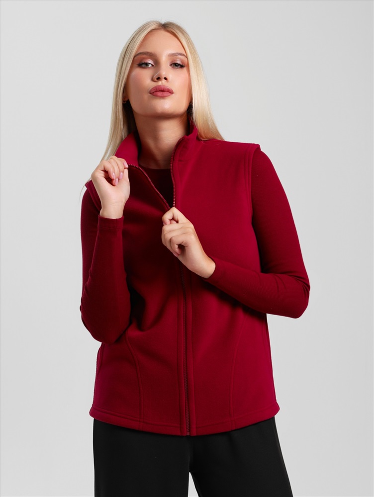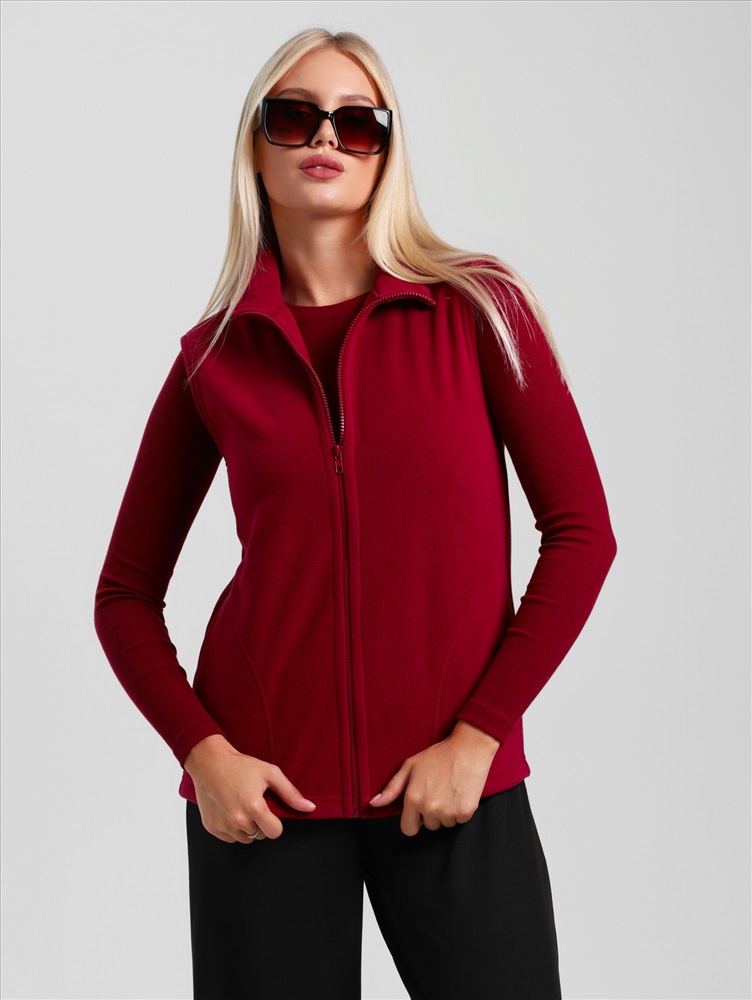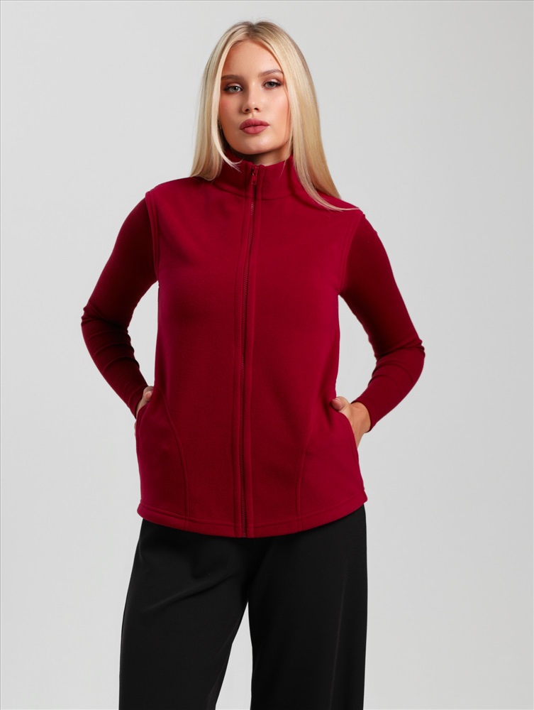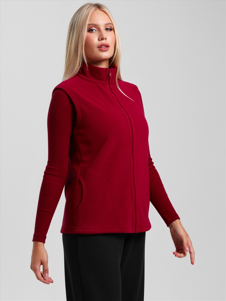 Жилет молодежный из трикотажного полотна «флис», полуприлегающего силуэта, воротником «стойка», карманами в боковых швах фигурной формы, центральной бортовой застежкой на тесьму «молния».