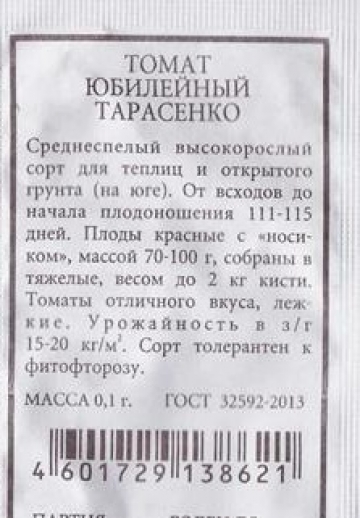 Среднеспелый высокорослый сорт для теплиц и открытого грунта (на юге). От всходов до начала плодоношения 111-115 дней. Плоды красные с «носиком», массой 70-100 г, собраны в тяжелые, весом до 2 кг кисти. Томаты отличного вкуса, лежкие. Урожайность в з/г 15-20 кг/м2. Сорт толерантен к фитофторозу. Фасовка 0,1г Комментарии к товару
