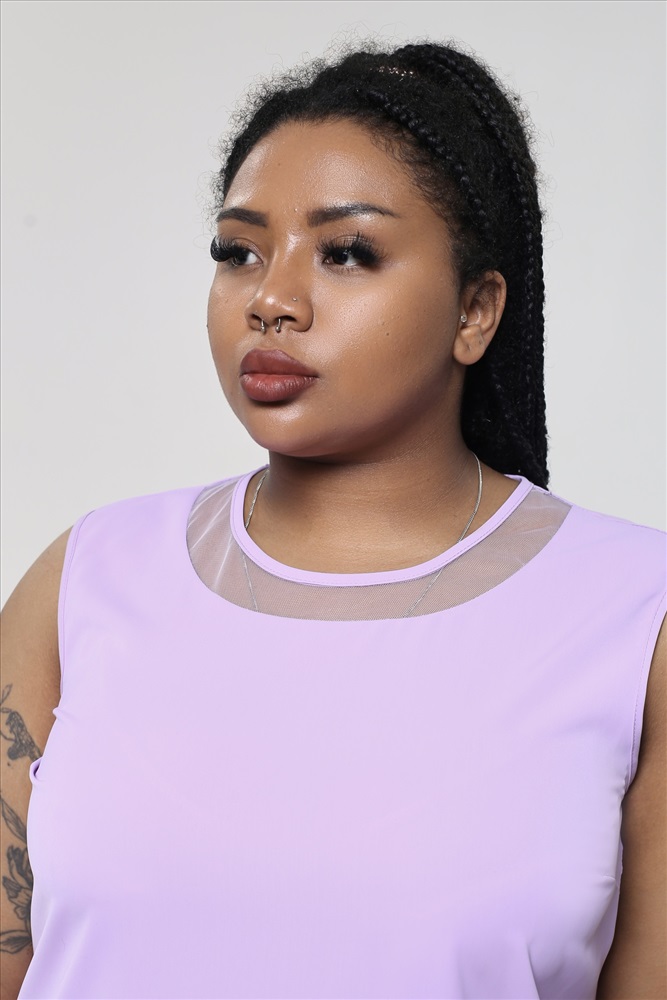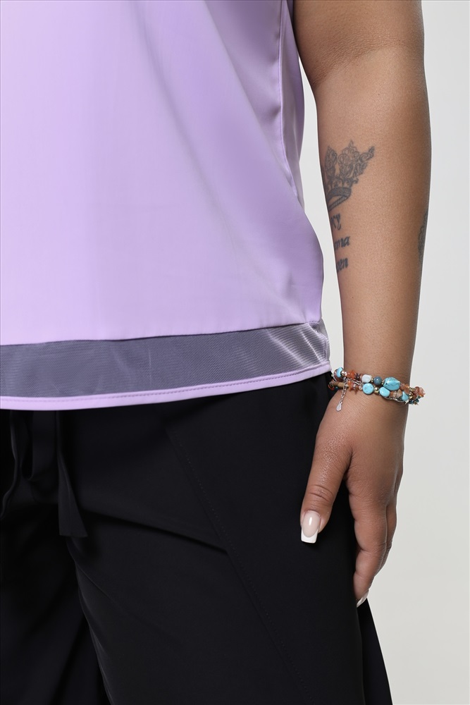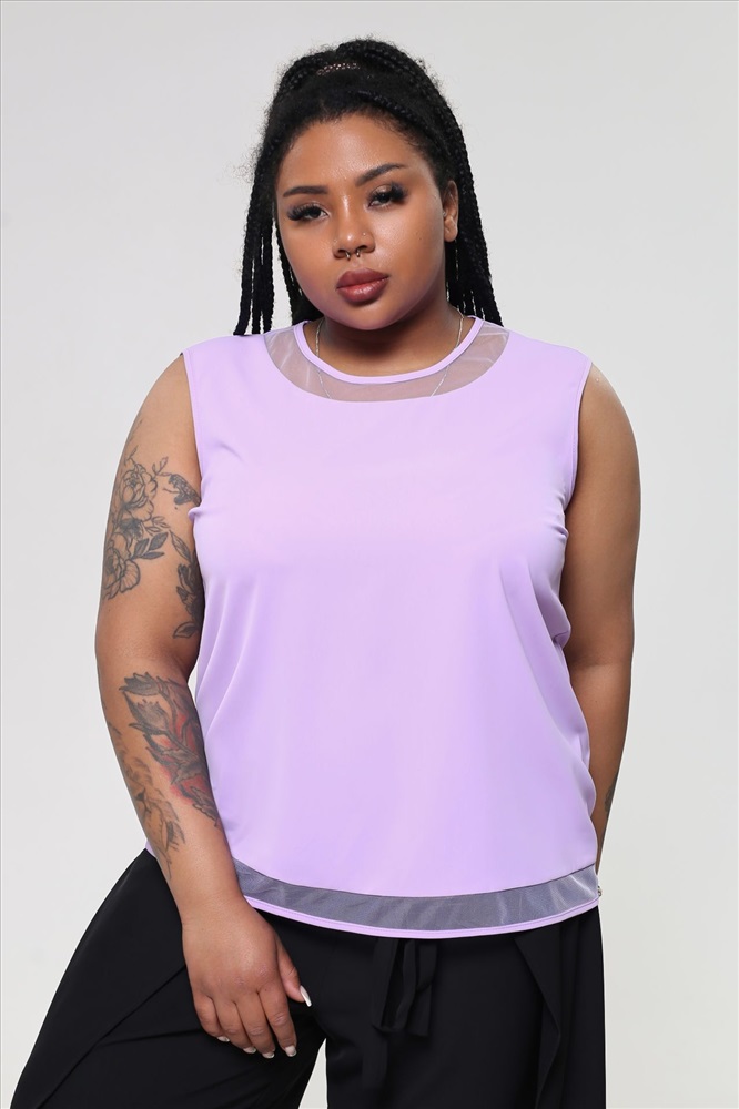 Топ однотонный с круглым вырезом, дополненный прозрачной вставкой лаванда