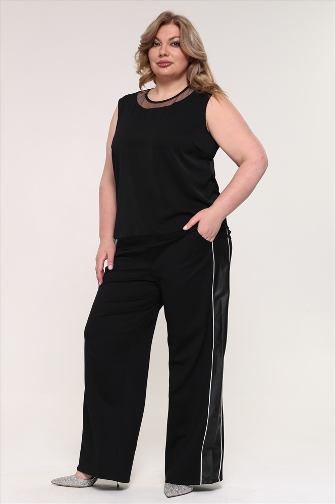 Классический однотонный топ свободного кроя выполнен из легкого и струящегося материала с широкими бретелями. Круглый вырез придает модели женственность и романтичность. Нежная сеточка, расположенная на груди и по низу топа, добавляет ему нарядности. Этот топ легко комбинируется с юбками и брюками, а также может служить основой для создания стильных образов с пиджаками и жакетами. Он позволяет выглядеть элегантно, не затрачивая больших финансовых средств.
