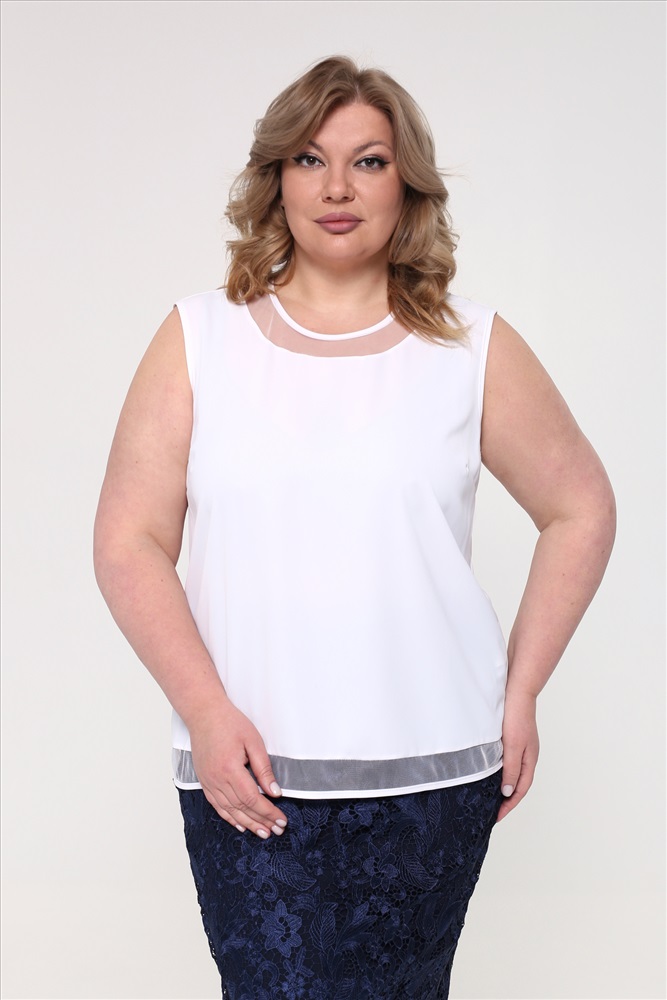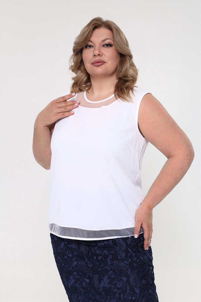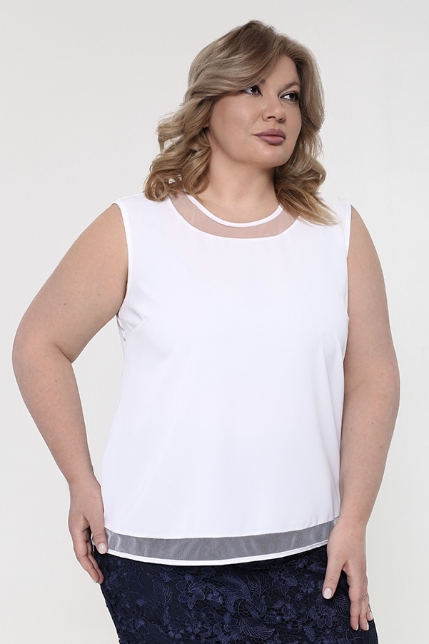 Топ с круглым вырезом с прозрачной вставкой белый