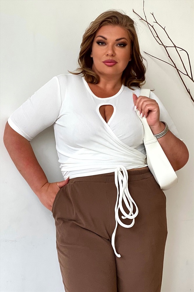 Укороченный топ облегающего кроя с запАхом спереди из мягкого трикотажа в рубчик имеет короткие втачные рукава. Круглая горловина и женственный вырез-капелька на груди оформлены узким кантом. Полуприлегающий силуэт обеспечивает завязка, которую можно завязать вокруг талии. Комбинировать топ такого плана можно с любимыми джинсами, брюками, юбками и шортами, создавая стильные аутфиты, в которых Вам будет максимально комфортно.
