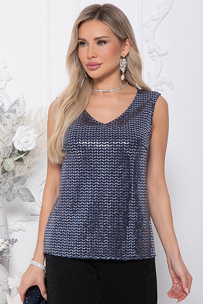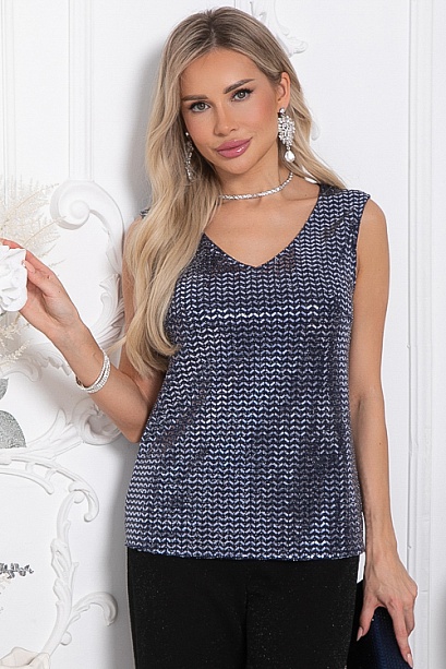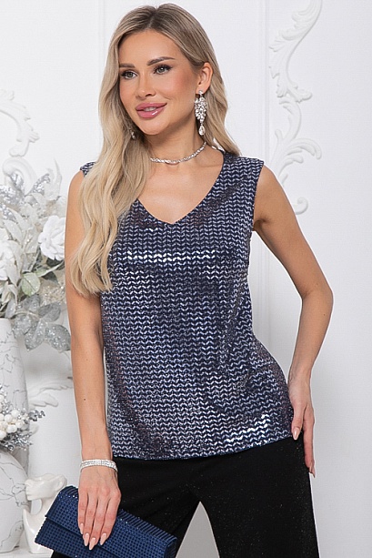 * Топ из трикотажа с пайетками. * Длина спинки: 44-59 46-59,5 48-60 50-61 52-62 54-62,5 * Рост модели 168 см * Размер модели 44 30% вискоза,65% п/э,5% лайкра