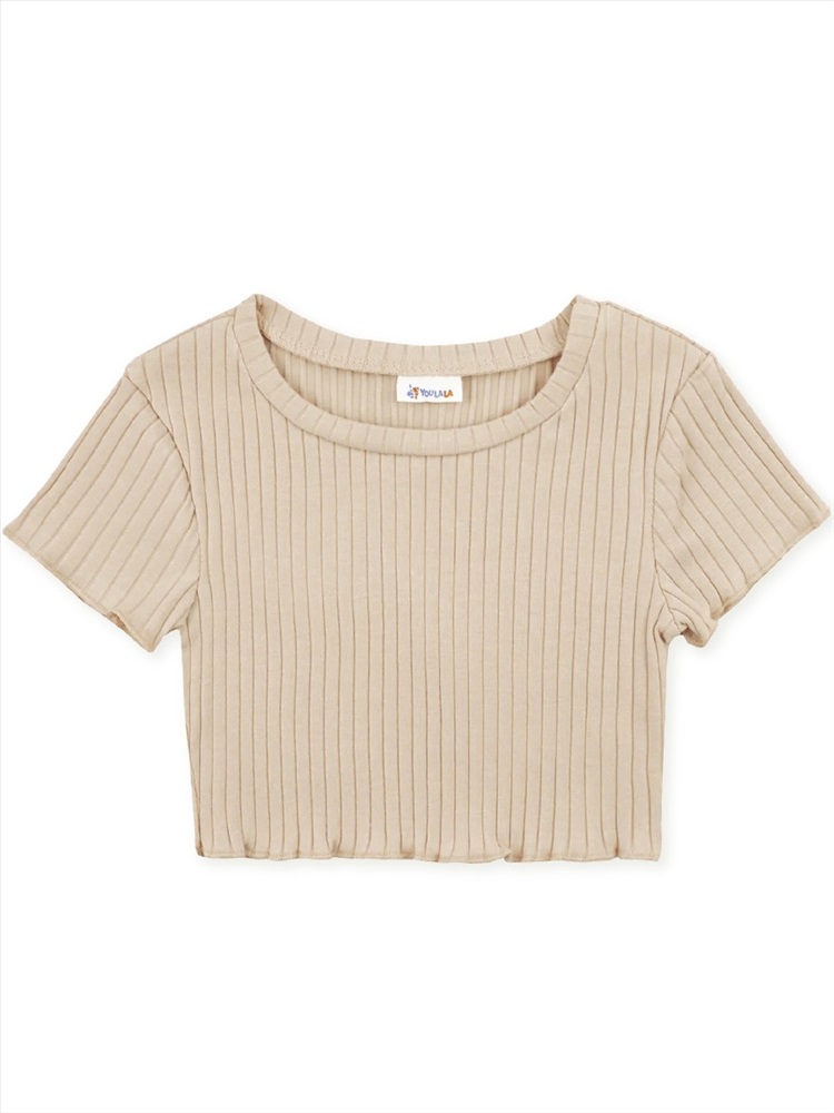 Красивый топ для девочки с коротким рукавом, выполненный из тонкого трикотажа в рубчик - лапши. По вороту - мягкая трикотажная манжета. Изделие хорошо тянется.