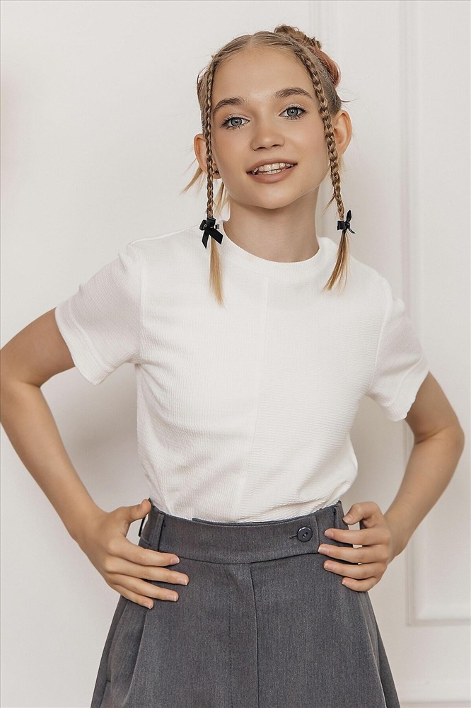 Страна производства: Россия Детский фактурный топ с короткими рукавами из особого трикотажа с выразительной текстурой. Идеальный баланс комфорта и стильного дизайна. Фактурное трикотажное полотно, удобные короткие рукава – обеспечивают комфорт в теплое время года. Универсальный крой – свободный, но сохраняющий силуэт. Мягкий качественный материал не раздражает кожу.