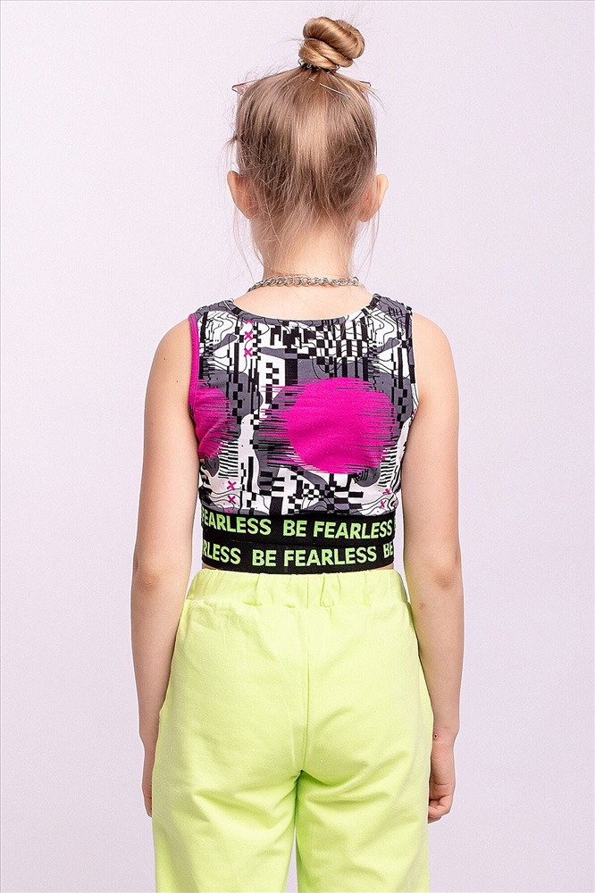 ID товара: 887626 Состав: 92% Хлопок, 8% Эластан Сезон: Весна/Лето Длина: Укороченная Фасон: Облегающий Рукав: без рукавов Вырез горловины: Округлый Рисунок: Абстракция Декоративные элементы: Принт Основная ткань: Супрем пенье Стиль: Спортивный Страна бренда: Россия Страна производства: Россия Топ для девочки трикотажный облегающий с принтом. Комментарии к товару