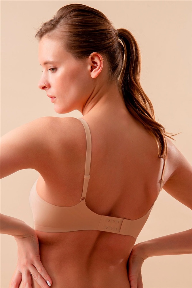 Бесшовный бюстгальтер-топ (Арт.3165WXY) от торговой марки Индефини. Бесшовный бюстгальтер-топ бежевого цвета на узких бретелях, изготовлен из эластичной синтетической ткани с высококачественной обработкой срезов. Отсутствие швов позволяет изделию оставаться незаметным под одеждой и обспечивать максимальный комфорт и облегание при носке.