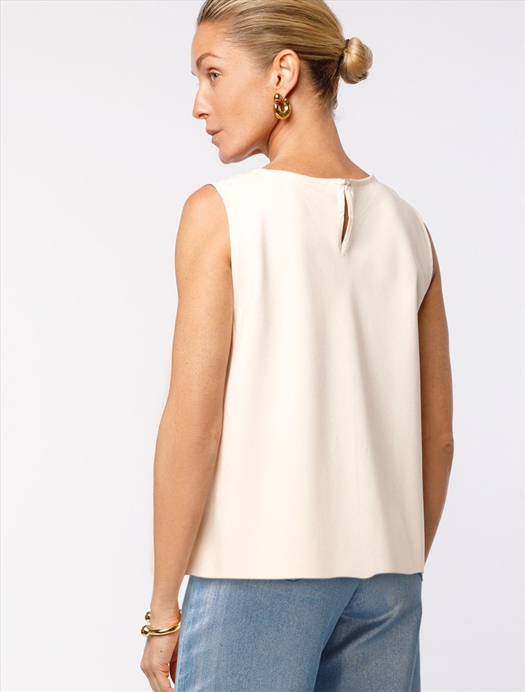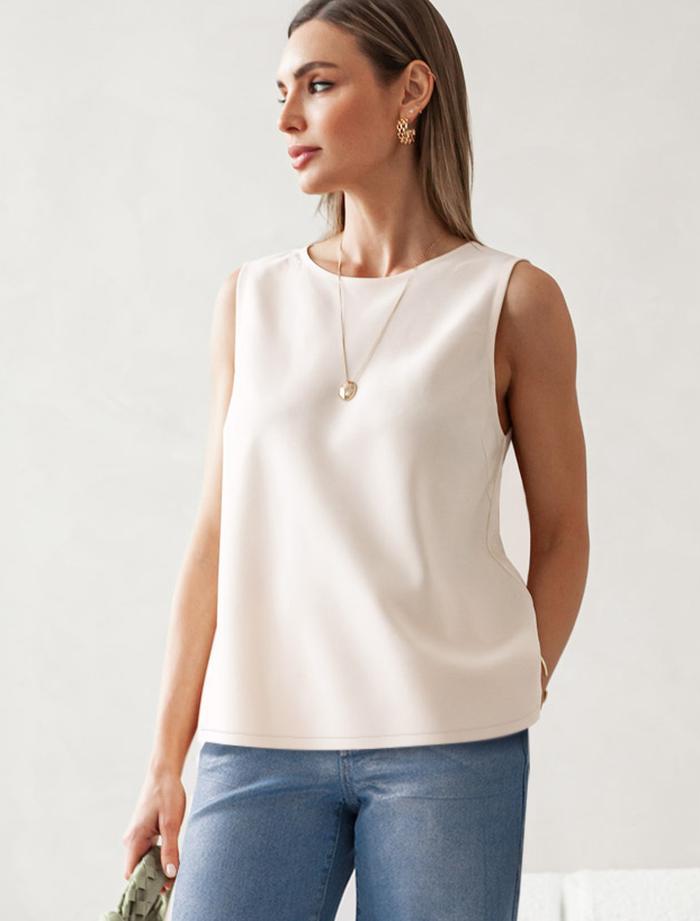 Состав: 70%Лиоцелл (Вис) 30%ПЭ; Параметры модели на первом фото: Рост 172, бюст 88, талия 64, бедра 88 Топ выполнен из плотного лиоцелла. Ткань изделия отлично держит форму, плавно драпируется и не просвечивает. В теплое время года приятно охлаждает кожу. Добавление синтетических волокон в составе изделия, предотвращает сминаемостьи поддерживает формоустойчивость. Топ сочетается в костюме с брюками D24.261, D24.265, D24.267, юбкой D24.261, шортами D28.057, а также очень эффектно с белыми шортами и джинсами.