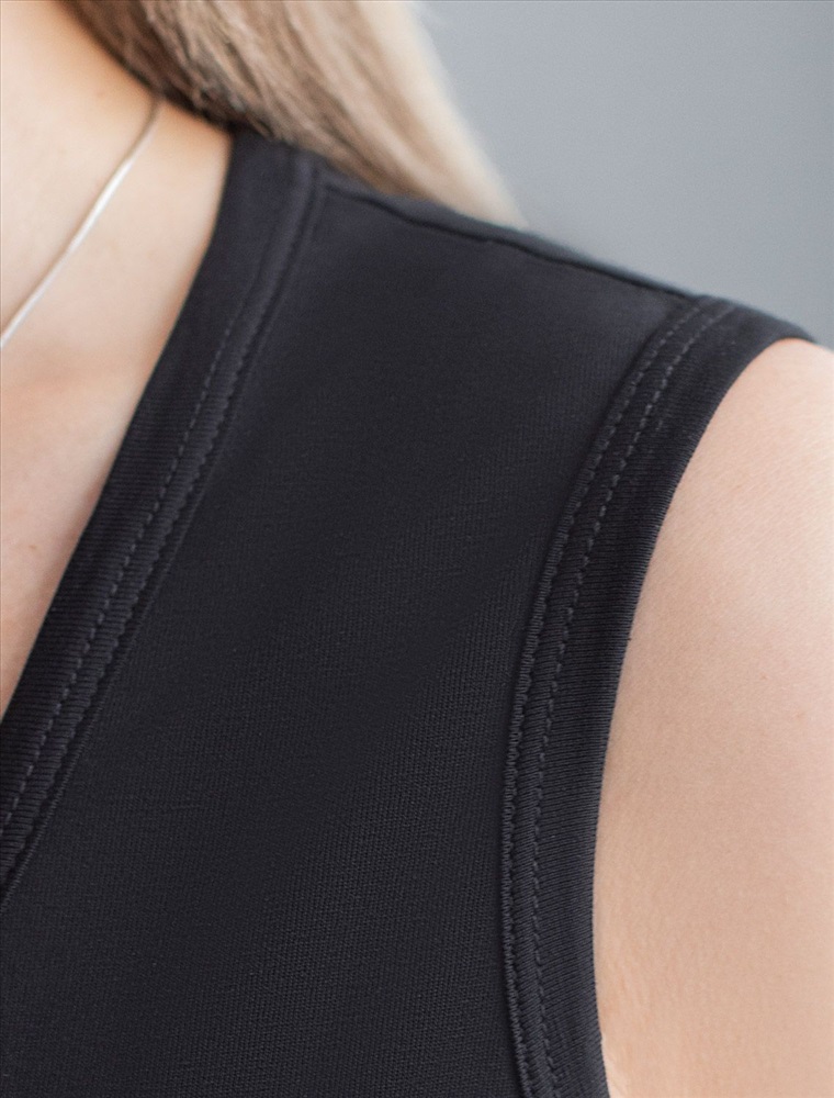 Топ выполнен из премиального хлопка с эластаном. V- вырез подчеркивает линию декольте и визуально вытягивает шею. Лаконичная базовая модель впишется в любой гардероб и дополнит многослойные образы. Материал изделия хорошо тянется и гарантирует идеальную посадку по фигуре. Из украшений только металлическим логотипом бренда.