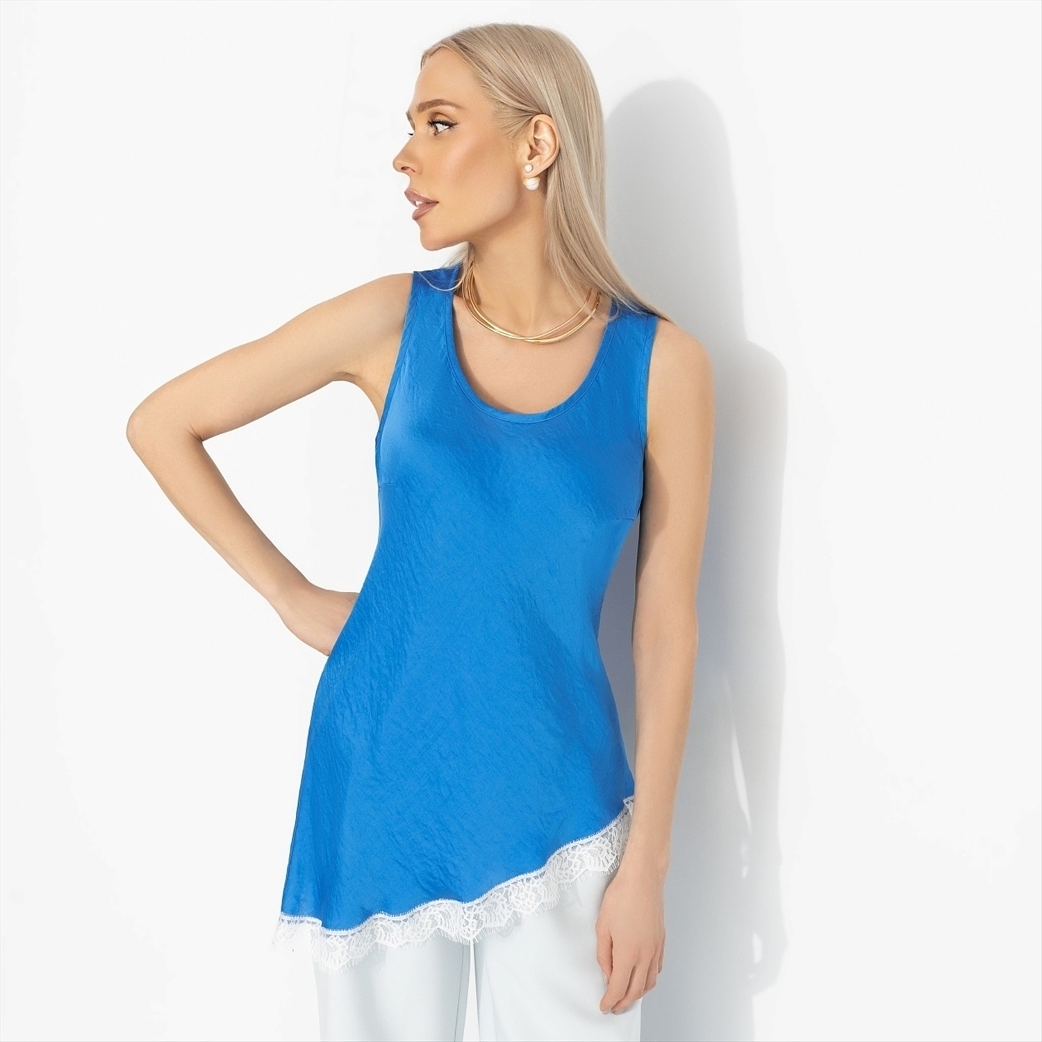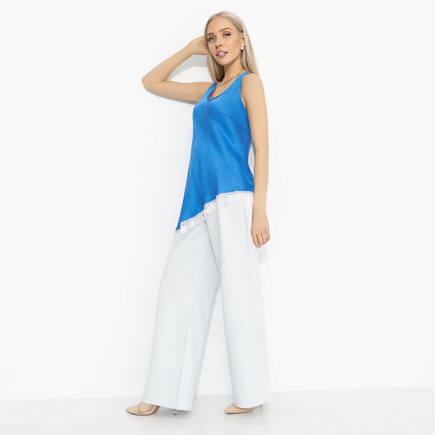 Есть женщины, которым идут яркие цвета и высокий контраст – они будто зажигают пространство вокруг. Топ ЧАРУТТИ «Следи за мной» как раз для таких: уверенных, заметных, тех, кто не растворяется в толпе. Синий оттенок работает как акцент силы. Топ свободного силуэта из шелка крэш. Мягкий округлый вырез, комфортная посадка. Струясь по коже, топ будто шепчет: все смотрят, улыбнись. Комментарии к товару