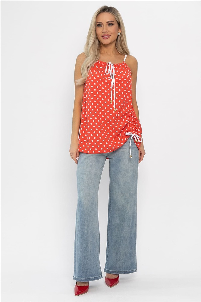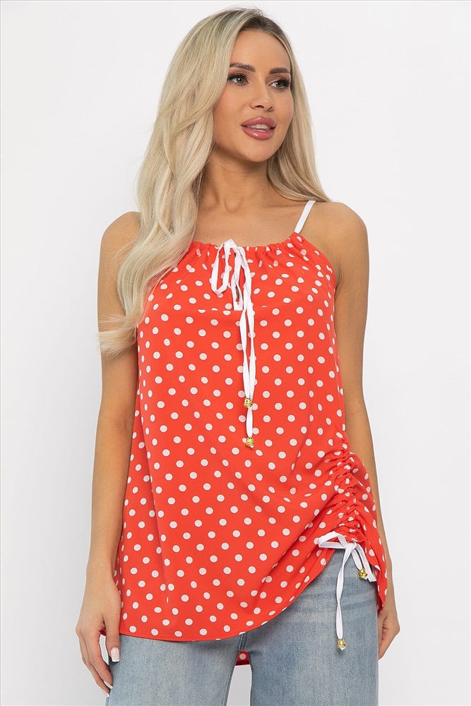 ID товара: 1127231 Состав: 60% Вискоза, 35% Полиэстер, 5% Эластан Сезон: Весна/Лето Длина: Средняя Фасон: Свободный Рукав: Без рукавов Вырез горловины: На бретельках Рисунок: Горох Декоративные элементы: Завязки Основная ткань: Вискоза Стиль: Повседневный Страна бренда: Россия Страна производства: Россия Состав : 60% вискоза, 35% полиэстер, 5% эластан Материал : блузочный Цвет : Красный Принт : горох Силуэт : свободный Карманы : Отсутствуют Подкладка : Отсутствует Вид застежки : без застёжки Декоративные элементы : отсутствуют Длина : 46-72 см, 48-73 см, 50-73 см, 52-74 см Топ отснят с джинсами Б13806-4М [ https://ltcollection.ru/catalog/bryuki/192912/ ] Летний топ с удлинённым кроем станет отличным выбором для отдыха. Он создаст лёгкий и стильный образ, который подчеркнёт вашу индивидуальность. Открытая горловина с регулируемыми завязками спереди обеспечивает комфорт и свободу движений. Особого внимания заслуживает оригинальный декоративный элемент слева внизу. Он позволяет слегка собрать ткань с одной стороны, добавляя образу изюминку. Наслаждайтесь свободой и удобством в нашем новом летнем топе! Внимание! Рекомендуем ориентироваться на размерную сетку и выбирать свой привычный размер, согласно размерной таблице. *Допуск отклонения длины при массовом производстве 1-3 см является нормой. Уход за изделием: Ручная стирка или стирка в машине при температуре до 30 °C, деликатный режим. Не использовать отбеливатели. Разрешена глажка при температуре до 110 °C. При глажке использовать специальную насадку на подошве утюга, гладить с паром. Не замачивать и не выжимать. Стирать изделие наизнанку, отдельно от других вещей. Комментарии к товару