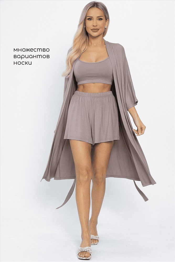 ID товара: 1204554 Состав: 95% Вискоза, 5% Лайкра Сезон: Демисезон Длина: Укороченная Фасон: Облегающий Рукав: Без рукавов Вырез горловины: На бретельках Основная ткань: Вискоза Страна бренда: Россия Страна производства: Россия Состав : 95% вискоза, 5% лайкра Материал : трикотаж Цвет : коричневый Принт : отсутствует Силуэт : облегающий Карманы : отсутствуют Подкладка : есть Вид застежки : без застёжки Декоративные элементы : отсутствуют Отснято с пеньюаром П14486-52М, с брюками Б14499-52М, с шортами от костюма К14496-52М Кроп-топ для любого случая — выполнен из трикотажа, который станет идеальным дополнением вашего образа. Модель с тонкими бретелями и округлым вырезом, аккуратно обработанным обтачкой, имеет мягкую резинку по низу, обеспечивающую комфортную посадку. Этот кроп-топ можно носить как самостоятельный элемент, под свитер или кардиган, а также он прекрасно подходит для домашнего отдыха. Внимание! Рекомендуем ориентироваться на размерную сетку и выбирать свой привычный размер, согласно размерной таблице. *Допуск отклонения длины при массовом производстве 1-3 см является нормой. Уход за изделием: Ручная стирка или стирка в машине при температуре до 30 °C, деликатный режим. Не использовать отбеливатели. Разрешена глажка при температуре до 110 °C. При глажке использовать специальную насадку на подошве утюга, гладить с паром. Не замачивать и не выжимать. Стирать изделие наизнанку, отдельно от других вещей. Комментарии к товару