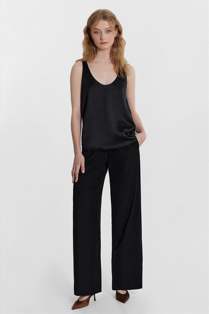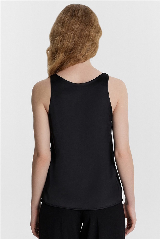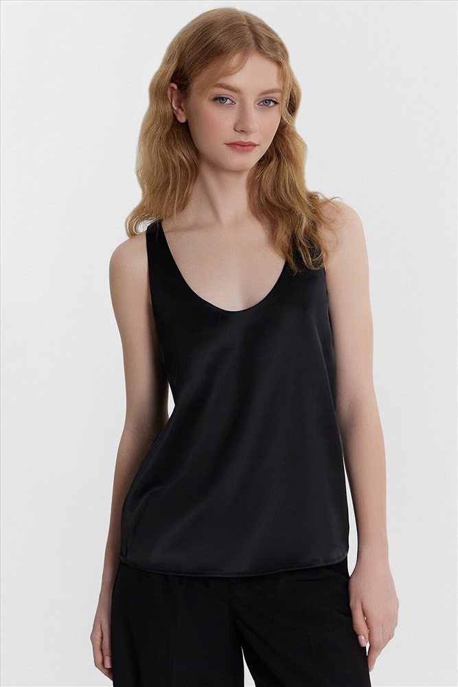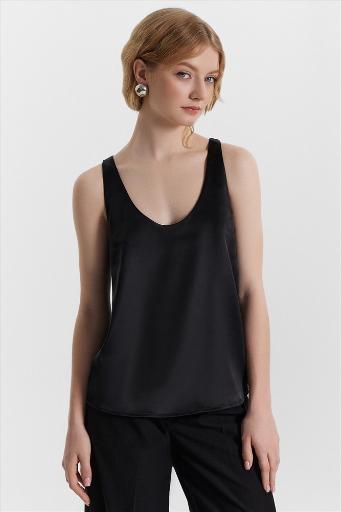 Элегантная блуза на узких бретелях – идеальный выбор для создания стильного и изысканного образа. Прямой, свободный силуэт и V-образная горловина придают модели утончённость и шарм. Перед и спинка на подкладке из основного материала обеспечивают комфорт и дополнительную плотность, а нижние срезы аккуратно обработаны швом вподгибку, что придаёт изделию завершённый вид. Блуза выполнена из прочного и приятного к телу струящегося материала, который красиво подчеркивает изящные линии фигуры. Этот материал не только отлично смотрится, но и дарит ощущение нежности и лёгкости при каждом движении. Такая блуза станет отличным дополнением вашего гардероба, подходящим как для повседневных образов, так и для особых случаев.