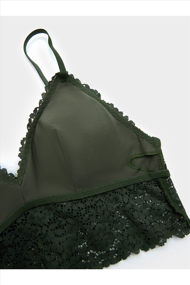 Анатомическая конструкция бюстье обеспечивает деликатную поддержку груди без жестких косточек или эффекта пуш-ап, делая его идеальным для повседневной носки. Съемные вкладыши позволяют адаптировать модель под ваши потребности, сохраняя естественность силуэта. Нежный зеленый цвет подчеркивает свежесть образа и легко сочетается с любым нижним бельем.