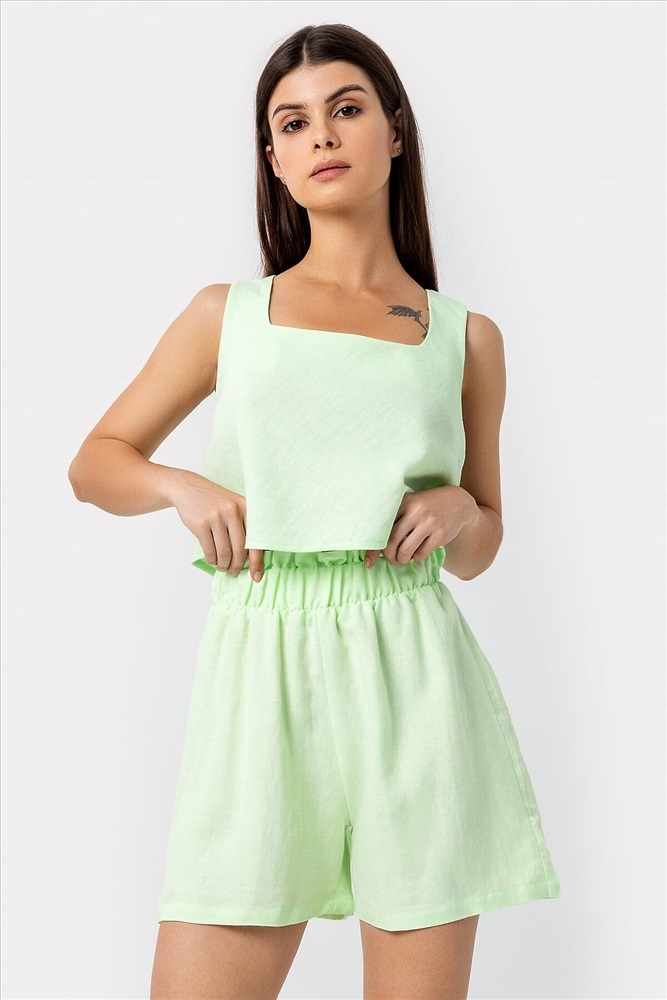 ID товара: 896692 Состав: 53% Лен; 47% Вискоза Сезон: Весна/Лето Вырез горловины: Каре Декоративные элементы: Без элементов Бретели: Широкие бретели Покрой: прямой Уход: Деликатная стирка при 30 градусах Фактура материала: Текстильный Страна бренда: Беларусь Страна производства: Белоруссия Стильный топ на широких бретелях. Выполнен из премиального льна и нежной легкой вискозы. Силуэт прямой, длина до линии талии. Вырез декольте достаточно глубокий, формы "каре". На спинке есть петелька-вешалка. Рекомендуем для стильных летних образов! Комментарии к товару