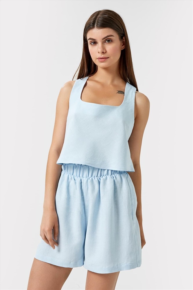 ID товара: 899118 Состав: 53% Лен; 47% Вискоза Сезон: Весна/Лето Длина: Средняя Фасон: Прямой Рукав: без рукавов Вырез горловины: Каре Декоративные элементы: Без элементов Основная ткань: Лен Стиль: Повседневный Бретели: Широкие бретели Покрой: прямой Уход: Деликатная стирка при 30 градусах Фактура материала: Текстильный Страна бренда: Беларусь Страна производства: Беларусь Стильный топ на широких бретелях. Выполнен из премиального льна и нежной легкой вискозы. Силуэт прямой, длина до линии талии. Вырез декольте достаточно глубокий, формы "каре". На спинке есть петелька-вешалка. Рекомендуем для стильных летних образов! Комментарии к товару
