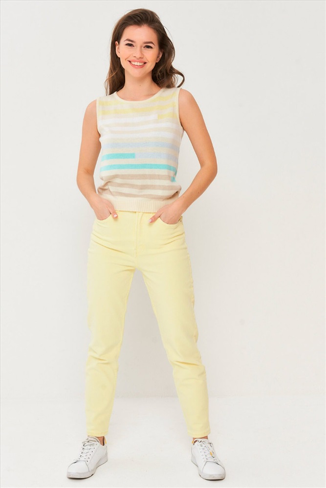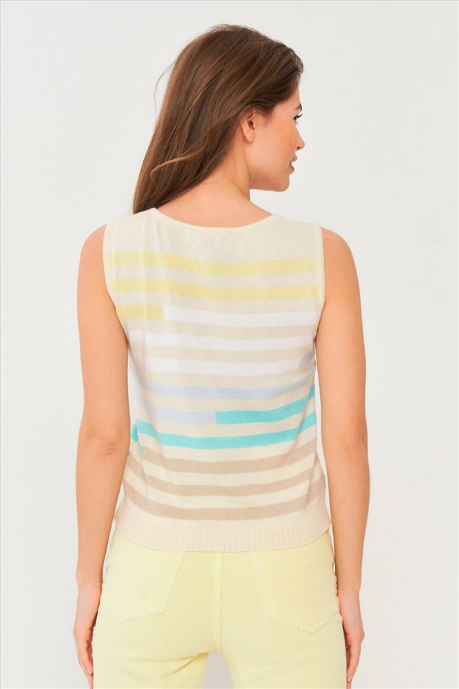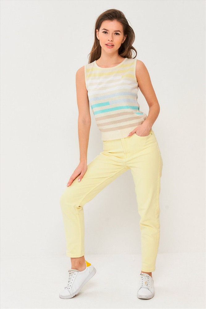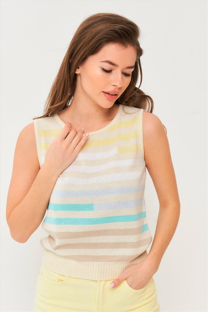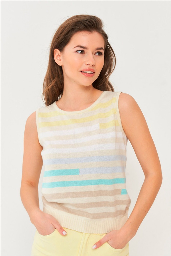 ID товара: 775120 Состав: Хлопок 50%, ПАН 50% СОРТ I Сезон: Весна/Лето Длина: 48 Фасон: Прямой Рукав: Без рукавов Вырез горловины: Округлый Рисунок: Полоски Основная ткань: Хлопок Стиль: Повседневный Страна бренда: Россия Страна производства: Россия Вязаный топ без рукавов. Комментарии к товару