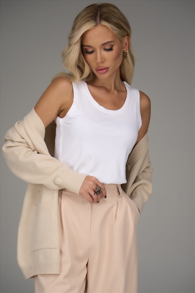 Современный и универсальный трикотажный топ станет идеальным дополнением вашего гардероба. Мягкая, приятная к телу ткань обеспечивает комфорт на весь день, а аккуратный крой подчёркивает силуэт, не сковывая движений. Минималистичный дизайн делает его легко комбинируемым — носите с офисными брюками, юбкой или любимыми джинсами. Топ доступен в нескольких спокойных оттенках, которые подчеркнут вашу естественную элегантность.