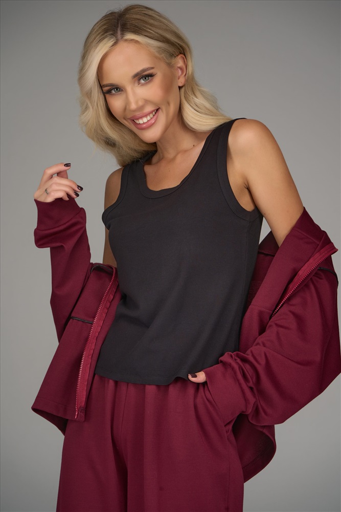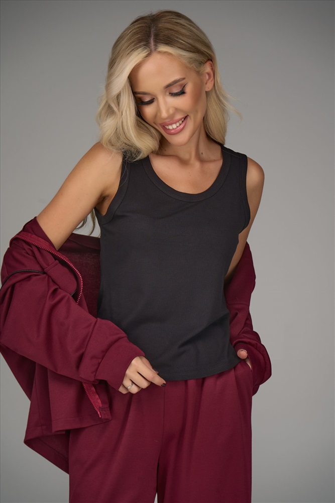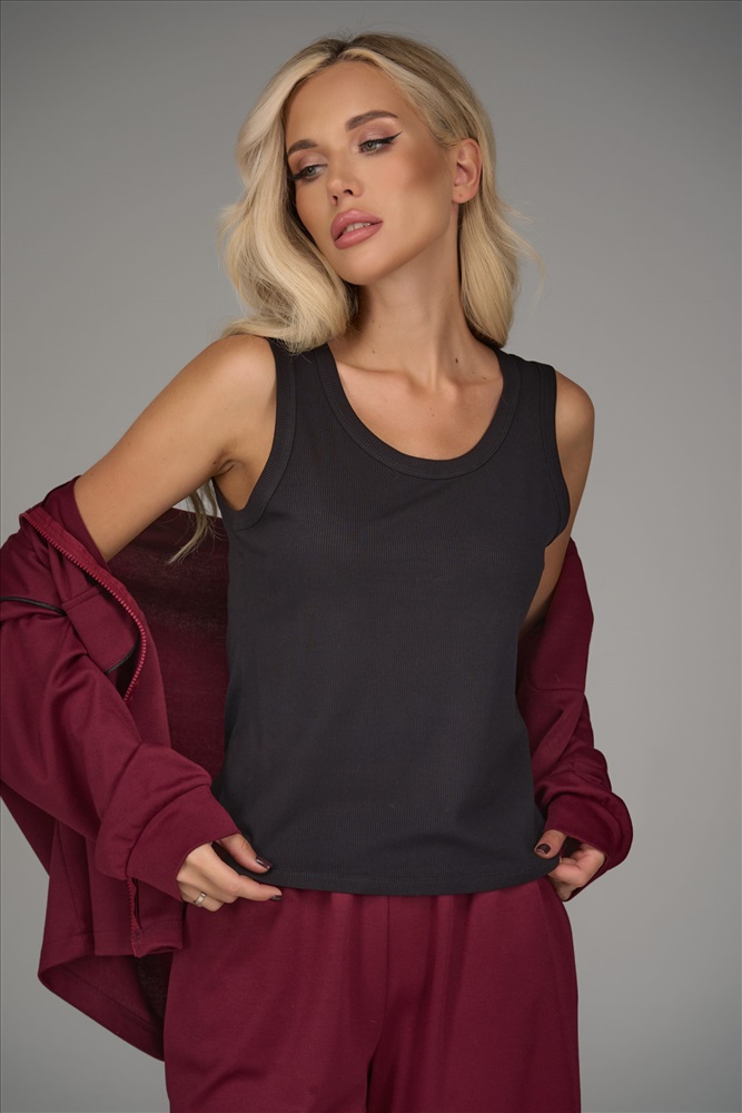 Современный и универсальный трикотажный топ станет идеальным дополнением вашего гардероба. Мягкая, приятная к телу ткань обеспечивает комфорт на весь день, а аккуратный крой подчёркивает силуэт, не сковывая движений. Минималистичный дизайн делает его легко комбинируемым — носите с офисными брюками, юбкой или любимыми джинсами. Топ доступен в нескольких спокойных оттенках, которые подчеркнут вашу естественную элегантность.