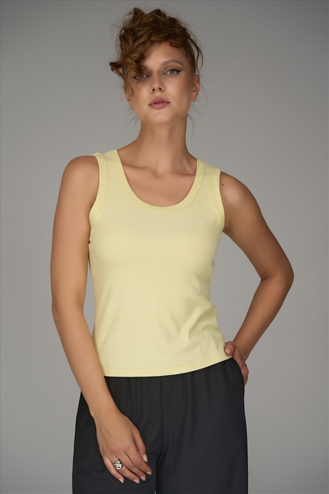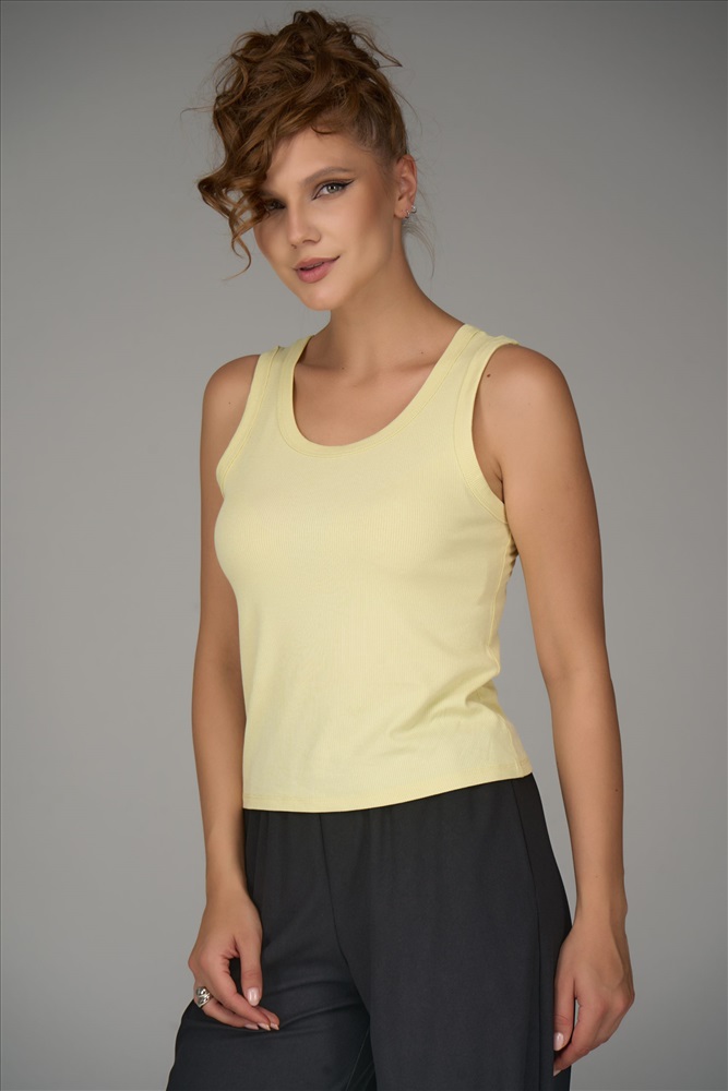 Состав: Хлопок – 100% Описание Современный и универсальный трикотажный топ станет идеальным дополнением вашего гардероба. Мягкая, приятная к телу ткань обеспечивает комфорт на весь день, а аккуратный крой подчёркивает силуэт, не сковывая движений. Минималистичный дизайн делает его легко комбинируемым — носите с офисными брюками, юбкой или любимыми джинсами. Топ доступен в нескольких спокойных оттенках, которые подчеркнут вашу естественную элегантность. Длина: 48 см.