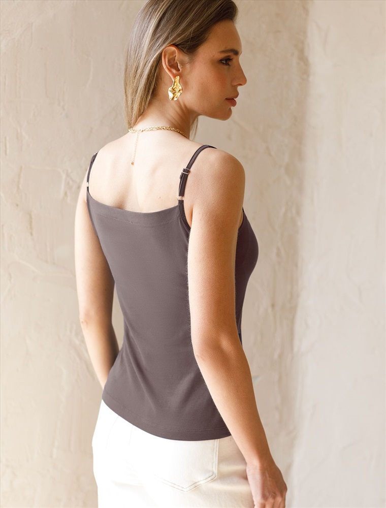 Топ с V-вырезом на регулируемых бретелях эластичный из премиального хлопка