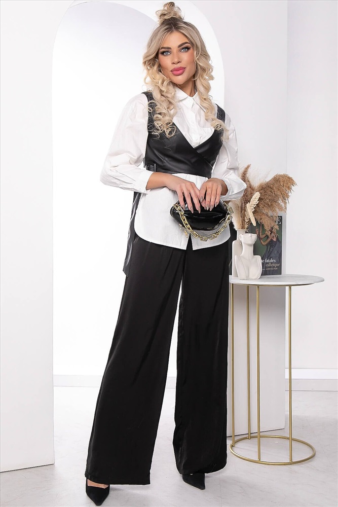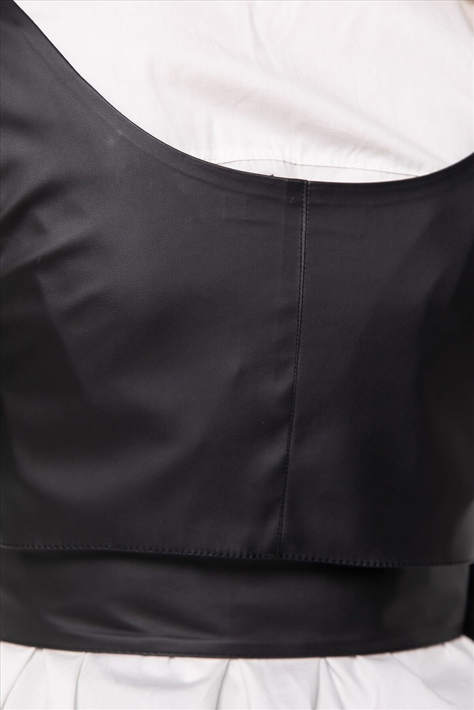 Стремление выделиться из толпы и создать уникальный образ – это хорошо известная мотивация современных модниц. И одним из самых ярких и эффектных способов добиться этого является сочетание кожаного топа и, например, рубашки. Комбинируя две такие разные по текстуре и стилю вещи, можно создать неповторимый образ, который будет сочетать в себе женственность, стиль и дерзость. Изделие имеет трикотажный подклад.