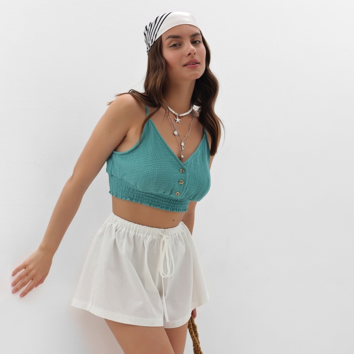 Топ укороченный женский MIST Muslin, размер L, бирюзовый