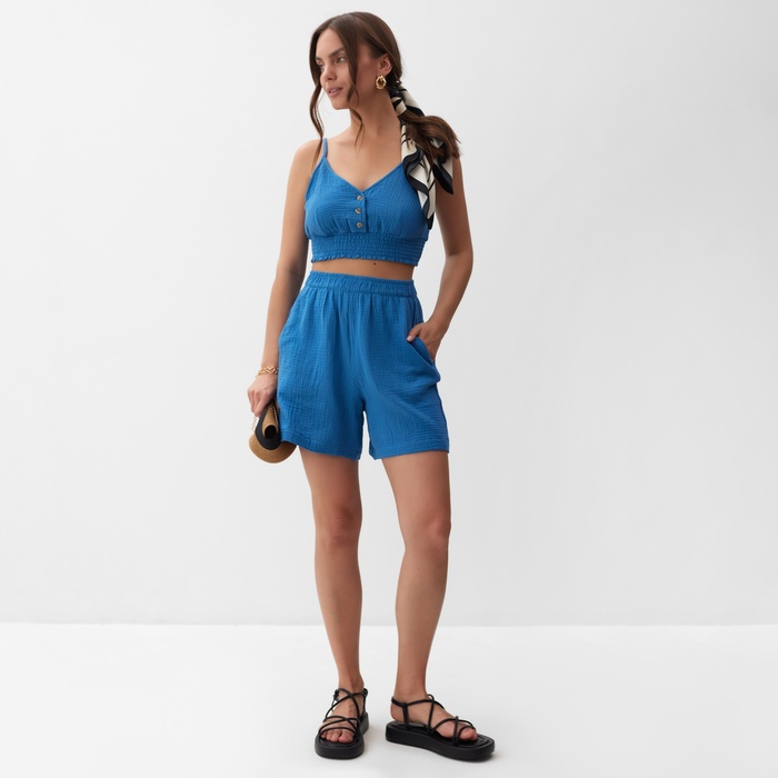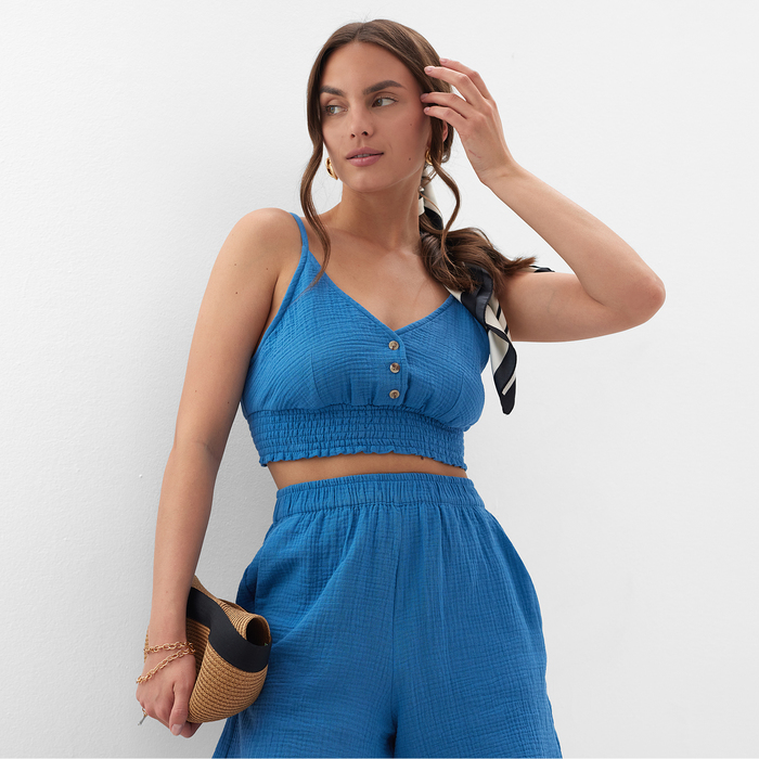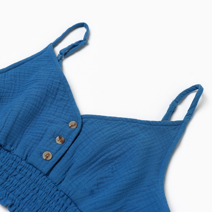 Габариты: 30 x 25 x 1 В боксе: 52 шт Назначение: Пляж, Повседневная Рекомендации по уходу: Не отбеливать, Деликатная стирка при 30 °С, Бережный режим глажки, Деликатный режим отжима Страна: Китай Состав: Хлопок 100% Материалы: хлопок Фасовка: по 1 шт Индивидуальная упаковка: Пакет Сертификат: ЕАС Цвет: Синий Для кого: Для женщины Ткань: Муслин Рост, см: 165 - 175 Рост модели на фото, см: 167 Сезон: Лето Тематика: Однотонная Вырез горловины: V-образный Декоративные элементы: Пуговицы Покрой: Облегающий Вид: Однотонная Состав ткани: Хлопок Вид бретелей: Тонкие Параметры модели на фото (ОГ-ОТ-ОБ): 86-65-92 Фиксированная цена: Да Комментарии к товару