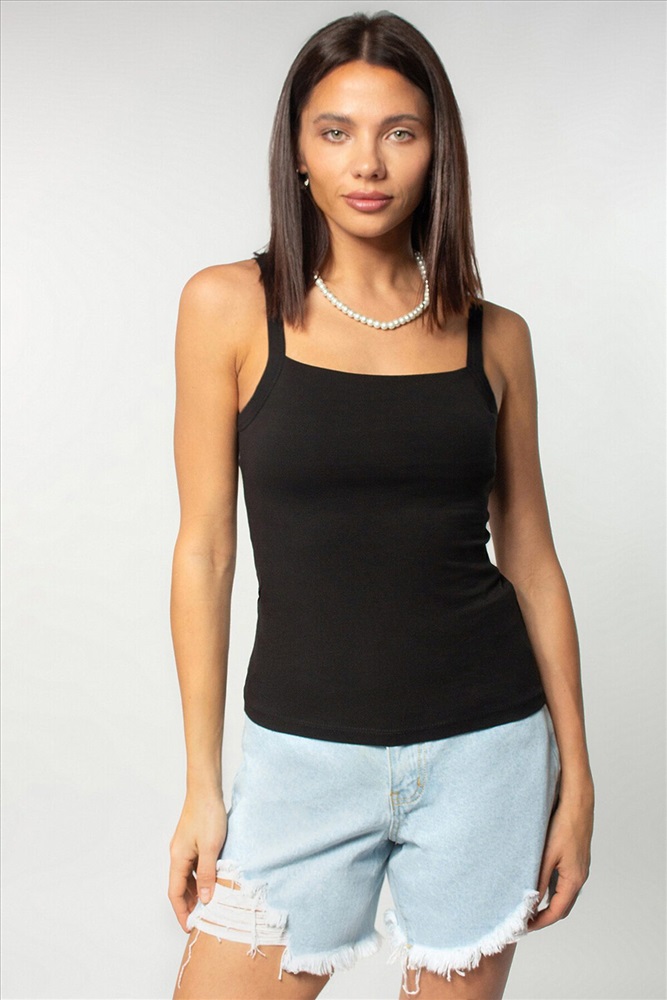 Базовый топ выполнен из премиального хлопка. Двуслойная зона бра. Линия декольте образована посредством сгиба полотна без отсрочки и закреплением обоих слоев в шве проймы. Удобные регулируемые бретели. Прямой силуэт подходит любому типу фигуры. Квадратный вырез горловины - тренд этого сезона. Самое высокое качество хлопковых волокон с добавлением эластана. Идеально держит форму и сохраняет внешний вид в течение долговременного использования.