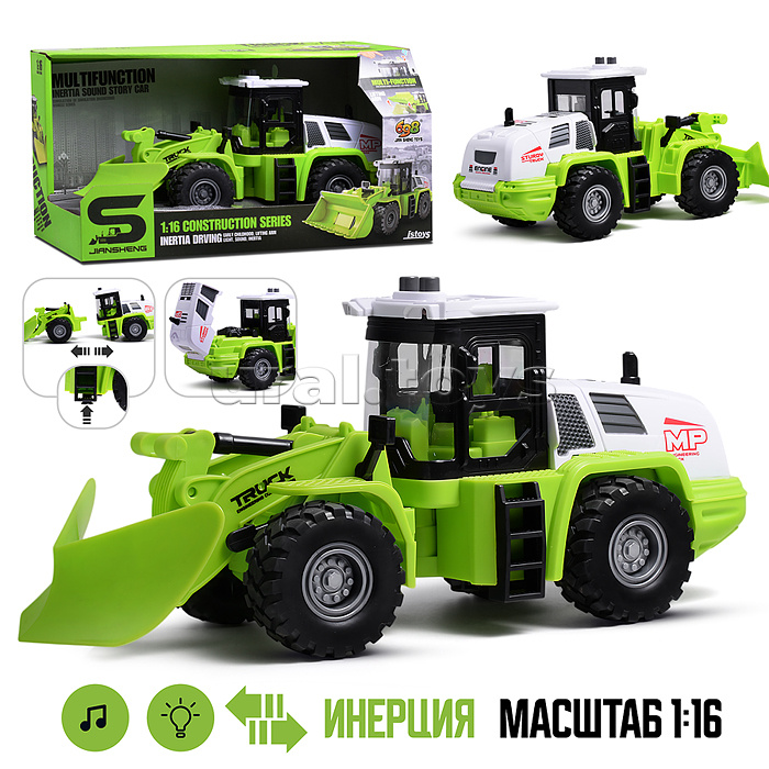 Код: 485775 Штрихкод: 6904110169357 Страна производитель: Китай Размеры упаковки: 32.5 x 14 x 17 см Количество в коробке: 18 • Размеры игрушки: 30х11х30 см. • Инерционный механизм движения. • При нажатии кнопок на крыше, мигают фары, звук мотора, звук работы. • Свет и звук работают от 3-х батареек "LR44" (входят в комплект для демонстрации) • Материал: пластик. • Соответствует требованиям безопасности продукции. • Для детей от 3-х лет. Комментарии к товару