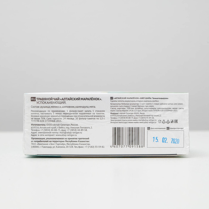 Габариты: 4,5 x 12 x 7 Страна: Россия В боксе: 54 шт Состав: См. на упаковке Материалы: см. на упаковке Фасовка: по 1 шт Индивидуальная упаковка: Цветная картонная коробка Сертификат: ЕАС Фасовка: Пакетированный Вид чая: Травяной Назначение: Для детей, Для нервной системы Форма выпуска: Чайный напиток Показания: Повышенная нервная возбудимость, Стресс Компоненты: Шиповник, Мята, Мелисса, Цветки календулы, Душица Действие: Успокоительное Детский чай поможет снизить возбудимость и беспокойство. Травяной сбор помогает быстрее заснуть и улучшить качество сна. Средство укрепляет организм ребёнка, стабилизирует состояние нервной системы. Состав: душица, мелисса, календула, мята, шиповник. Рекомендации по применению: 1 фильтр-пакет залить 1 стаканом кипятка, настаивать 5 минут, периодически надавливая на пакетик. Условия хранения: держите в сухом месте при относительной влажности не выше 70 %. Срок годности: 24 месяца. В упаковке: 20 фильтр-пакетов по 1,5 г. Не является лекарством. Комментарии к товару