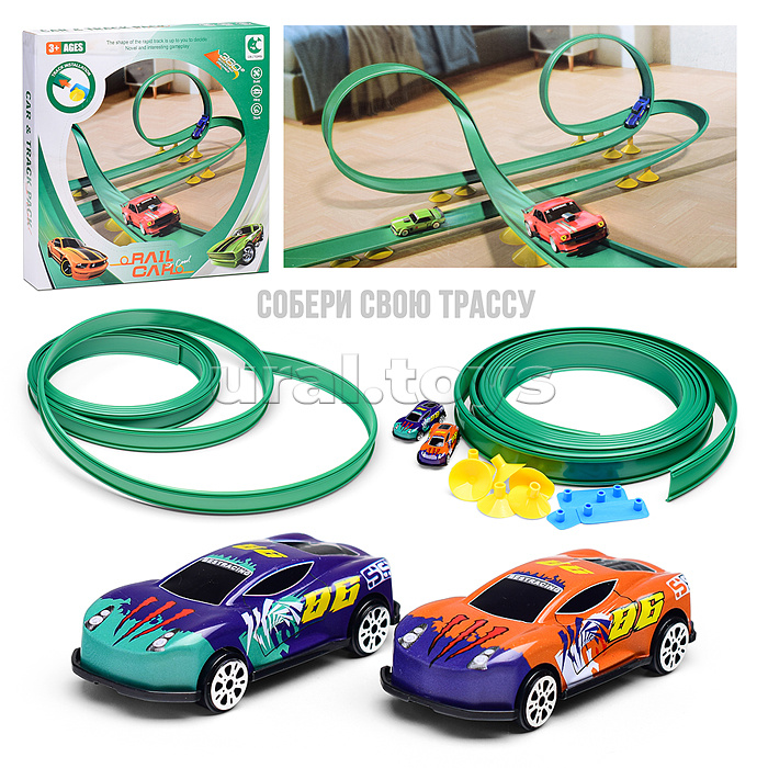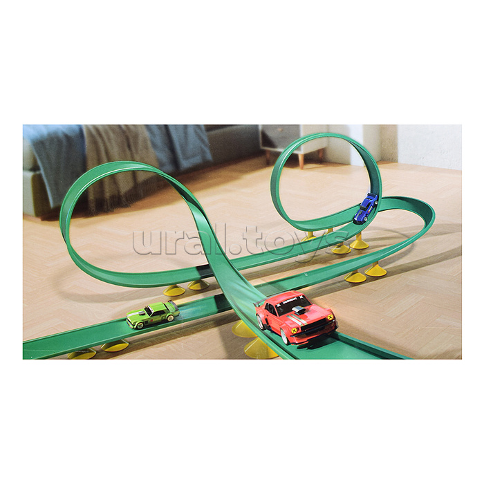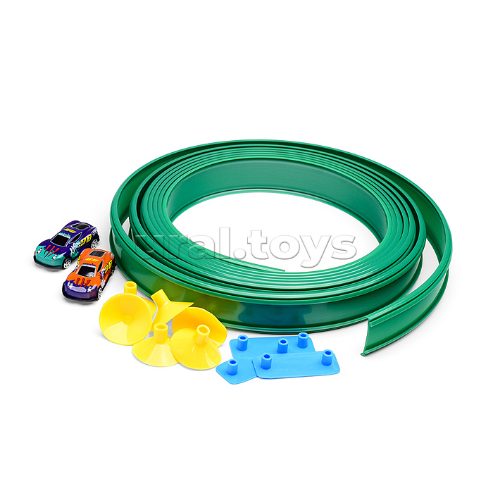 • В наборе: - гибкая дорога (500 см.) - 6 присосок. - 2 машинки с металлическим кузовом (6.5х3х2 см.) • Материал: пластик. • Соответствует требованиям безопасности продукции. • Для детей от 3-х лет.