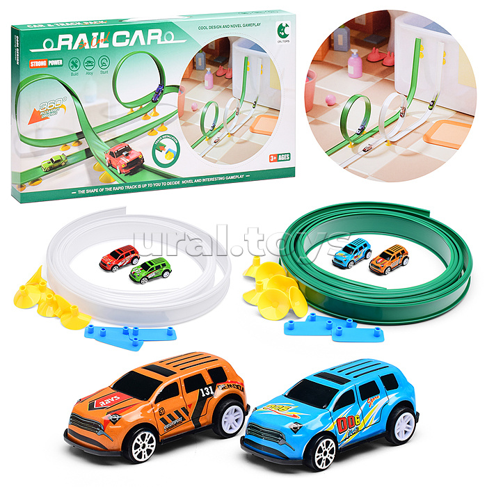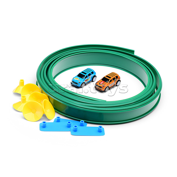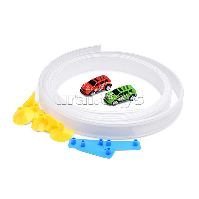 Код: 487712 Штрихкод: 6904111637459 Страна производитель: Китай Размеры упаковки: 48.5 x 4.5 x 24.5 см Количество в коробке: 24 • В наборе: - 2 гибких сегмента трека (по 500 см.) - 12 присосок. - 4 машинки с металлическим кузовом и инерционным механизмом (6.5х3х2.5 см.) • Материал: пластик. • Соответствует требованиям безопасности продукции. • Для детей от 3-х лет. Комментарии к товару