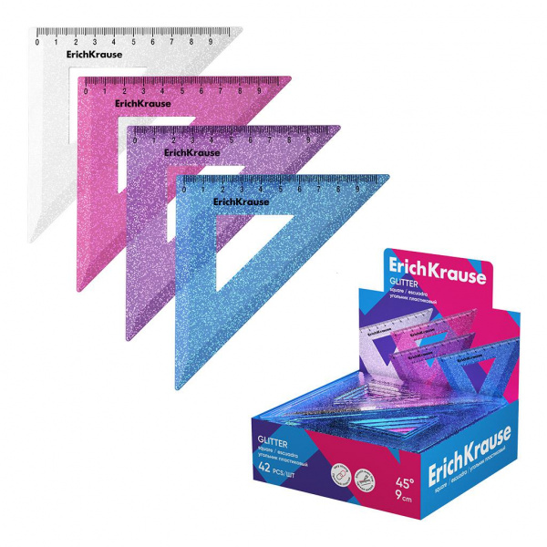 Наименование: Треугольник 9 см х 45 градусов Glitter ассорти 55527 ErichKrause