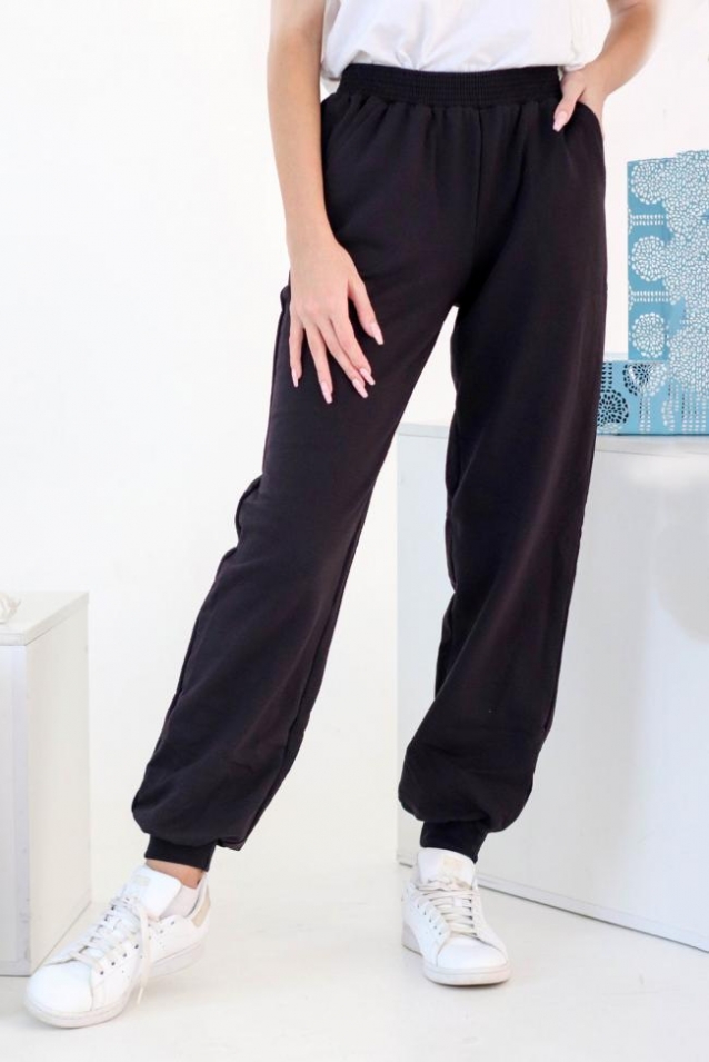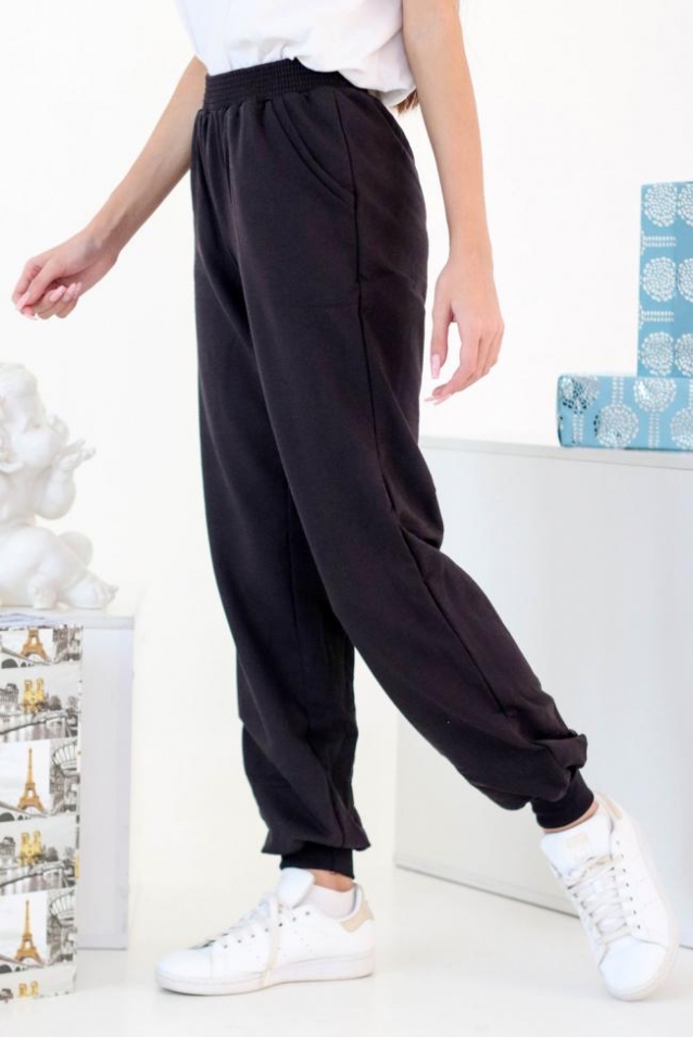 Теплое трико из футера с начесом. Эластичная резинка на поясе, манжеты снизу, по бокам карманы