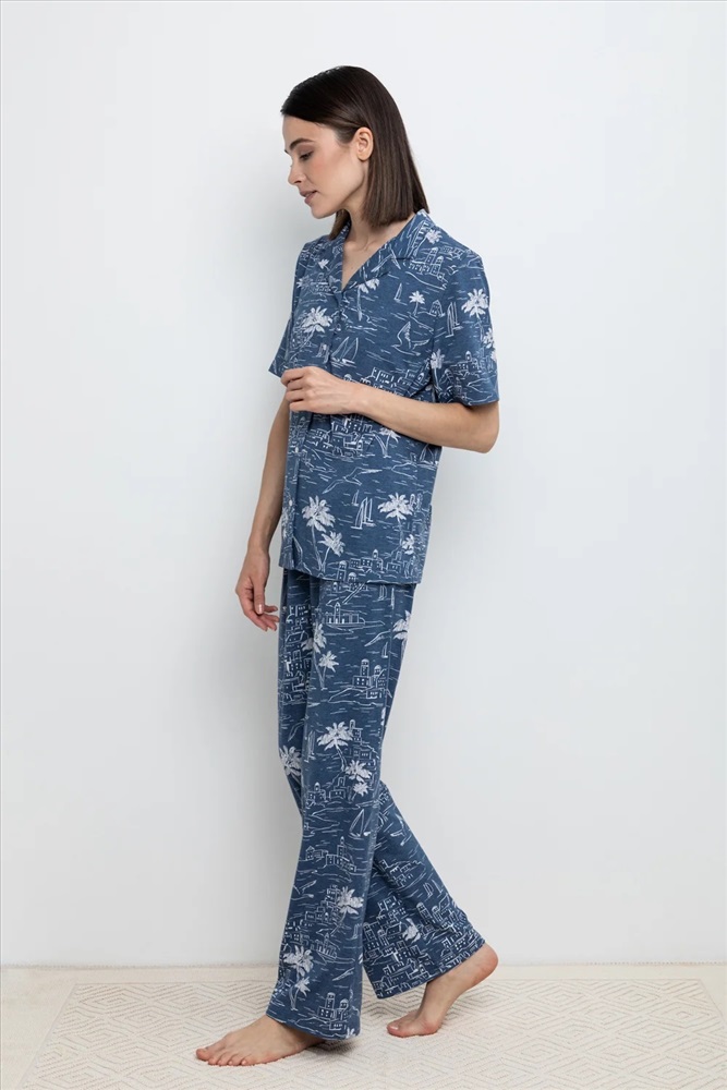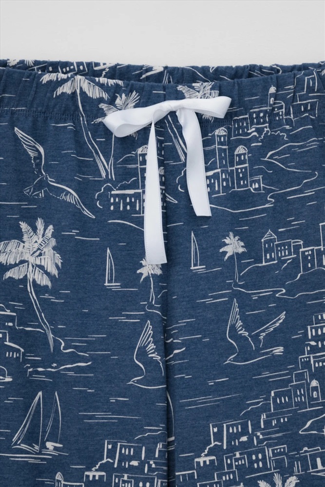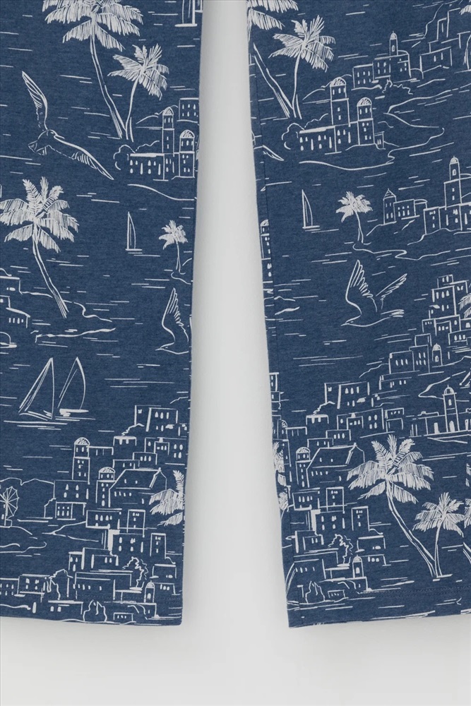 Лёгкие комфортные брюки из набивного меланжевого трикотажа . Пояс на резинке регулируется по ширине с помощью атласной ленты. Низ изделия обработан плоскими швами. Гладкий материал приятен к телу, не теряет форму и позволяет коже дышать.