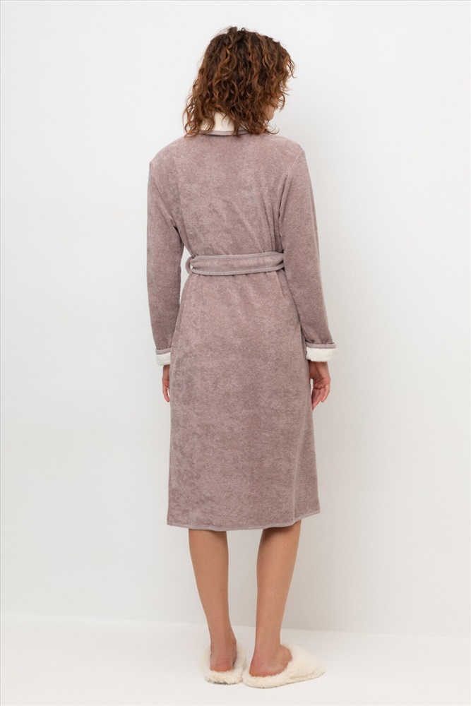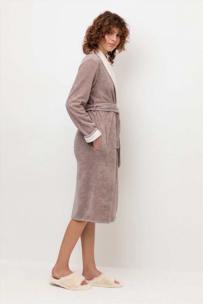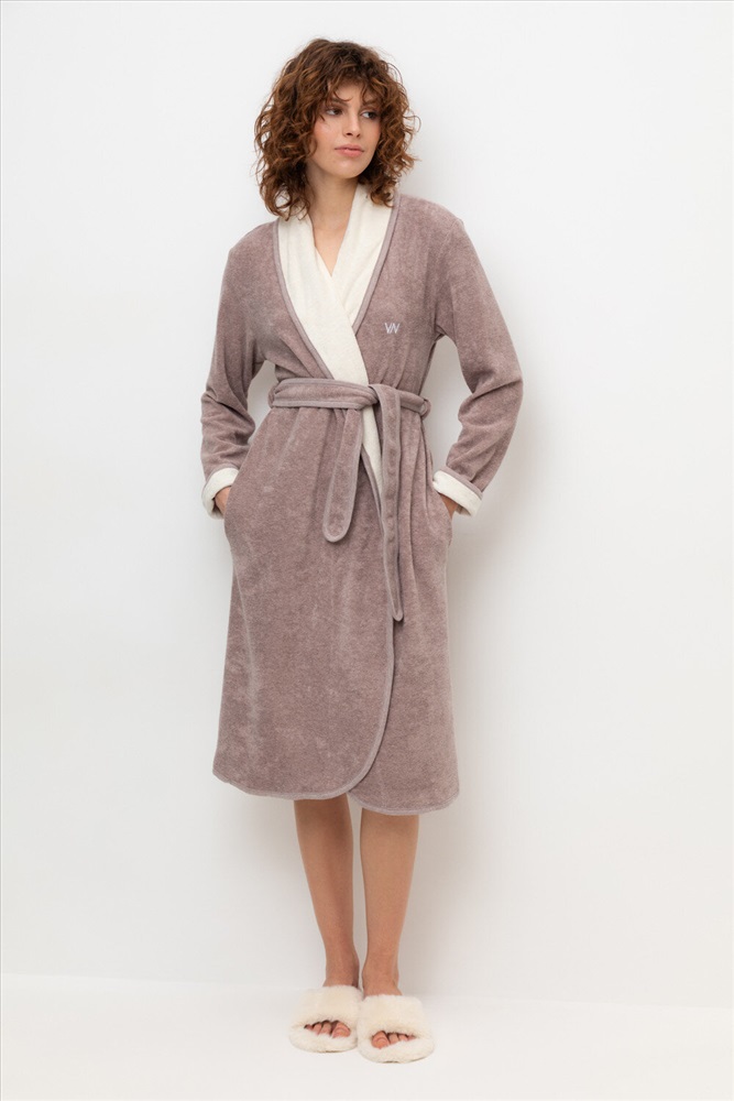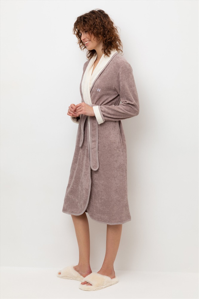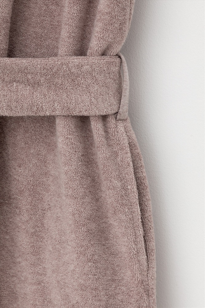 Уютный легкий махровый халат на запах с длинными рукавами. В боковых швах два удобных кармана. На груди вышивка. С помощью пояса можно регулировать посадку и силуэт. Материал приятен к телу и позволяет коже дышать.
