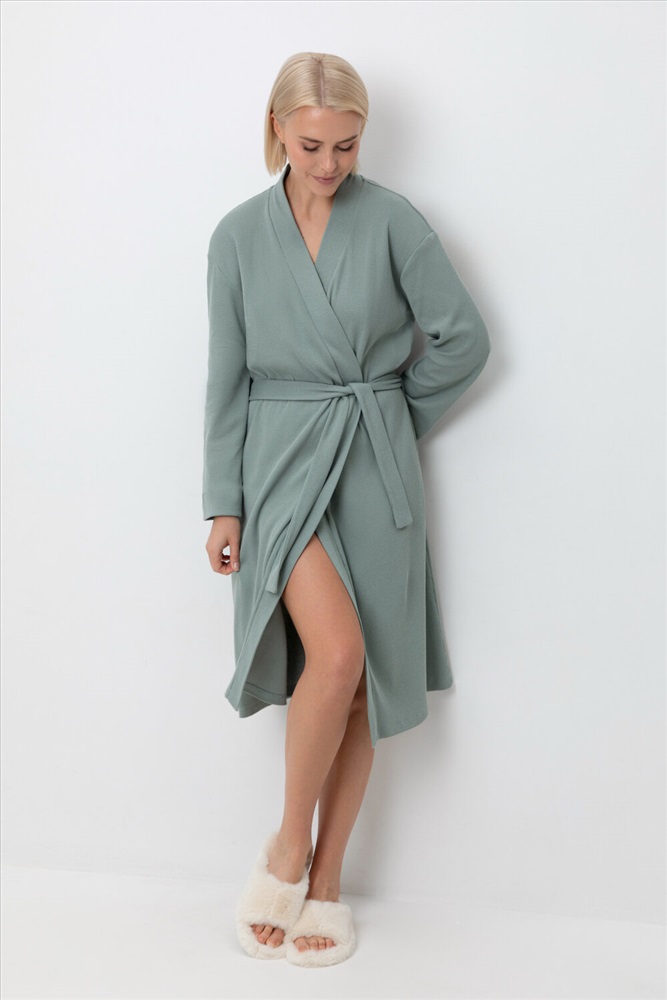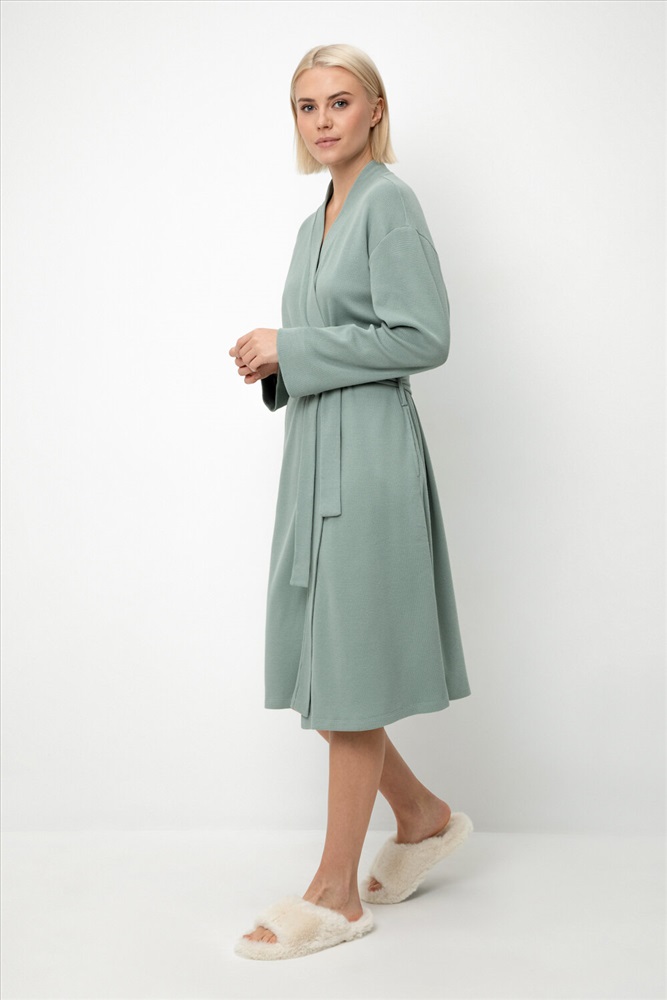 Производитель: Trikozza; Российский размер: 44; Обхват груди: 88; Обхват талии: 70; Обхват бедер: 94; Артикул поставщика: Е 50026; Ткань: Рибана вафельная; Состав: 95% хлопок, 5% спандекс; Сезон: Весна, Лето; Год: 2025; Страна: Россия; Рост: 164-170 Халат из мягкого объемного трикотажа с добавлением эластичных волокон подарит атмосферу домашнего уюта и комфорта.