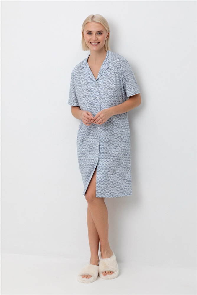 Производитель: Trikozza; Российский размер: 44; Обхват груди: 88; Обхват талии: 70; Обхват бедер: 94; Артикул поставщика: Е 50027; Ткань: Супрем; Состав: 100% хлопок; Сезон: Весна, Лето; Год: 2025; Страна: Россия; Рост: 164-170 Рубашка-халат из высококачественного гребенного хлопка для домашнего комфорта. .